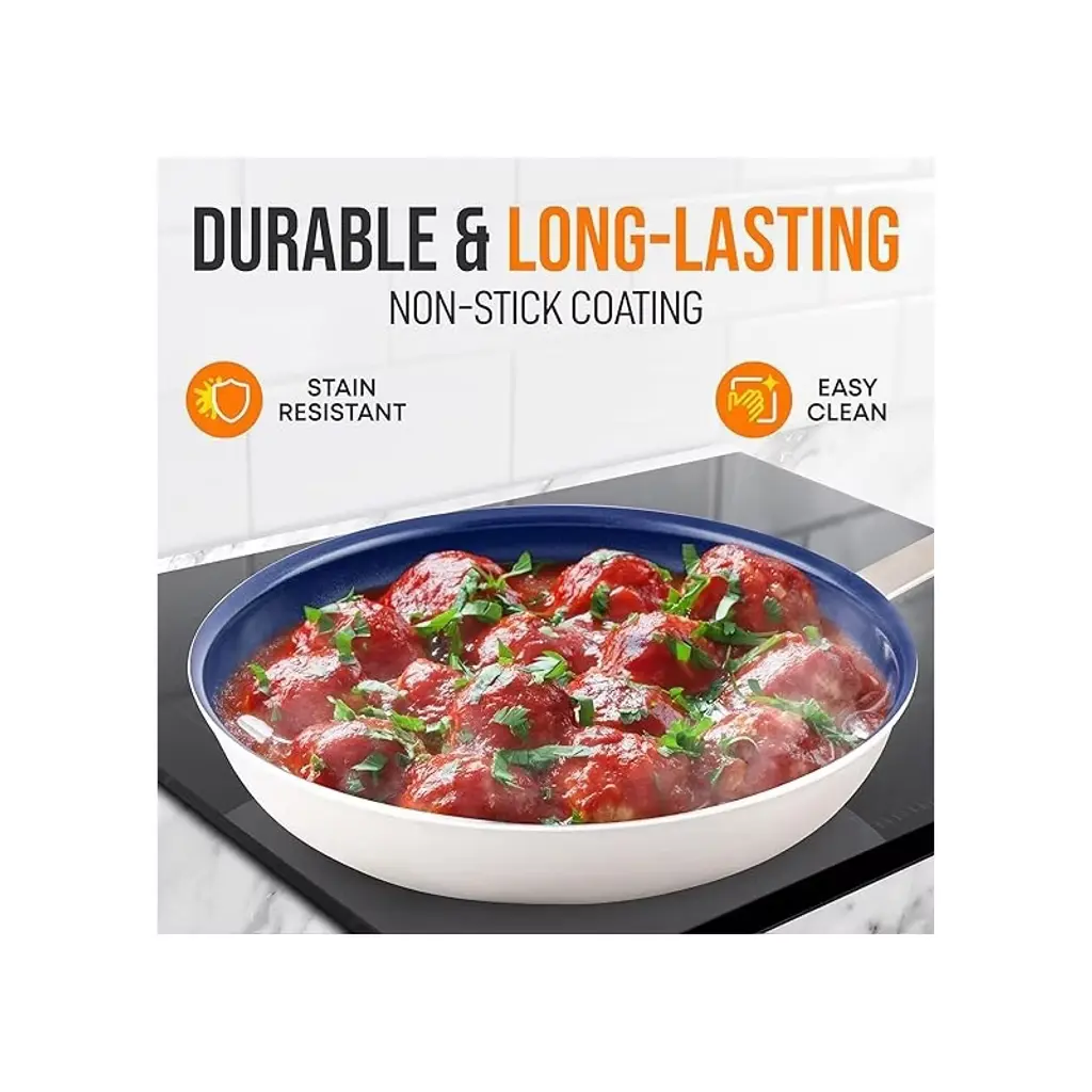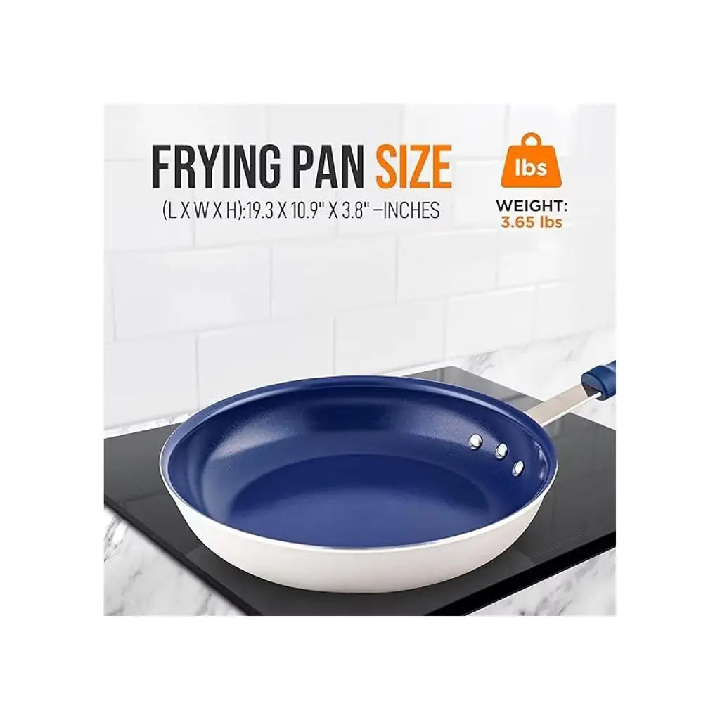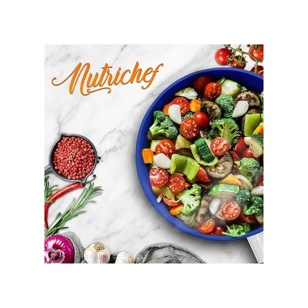 Nutrichef 10" Medium Fry Pan - Medium Skillet Nonstick Frying Pan With Silicone Handle, Ceramic Coating, Blue Silicone Handle