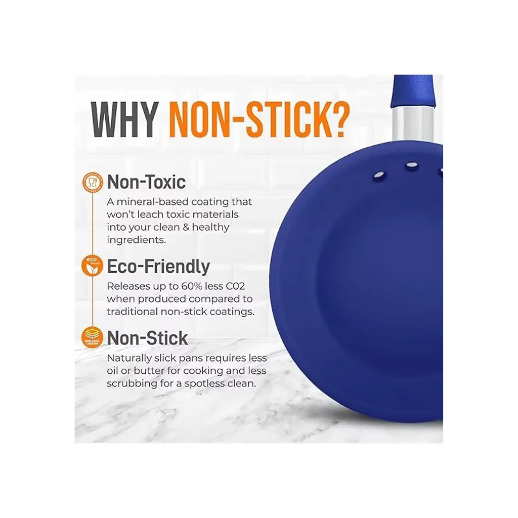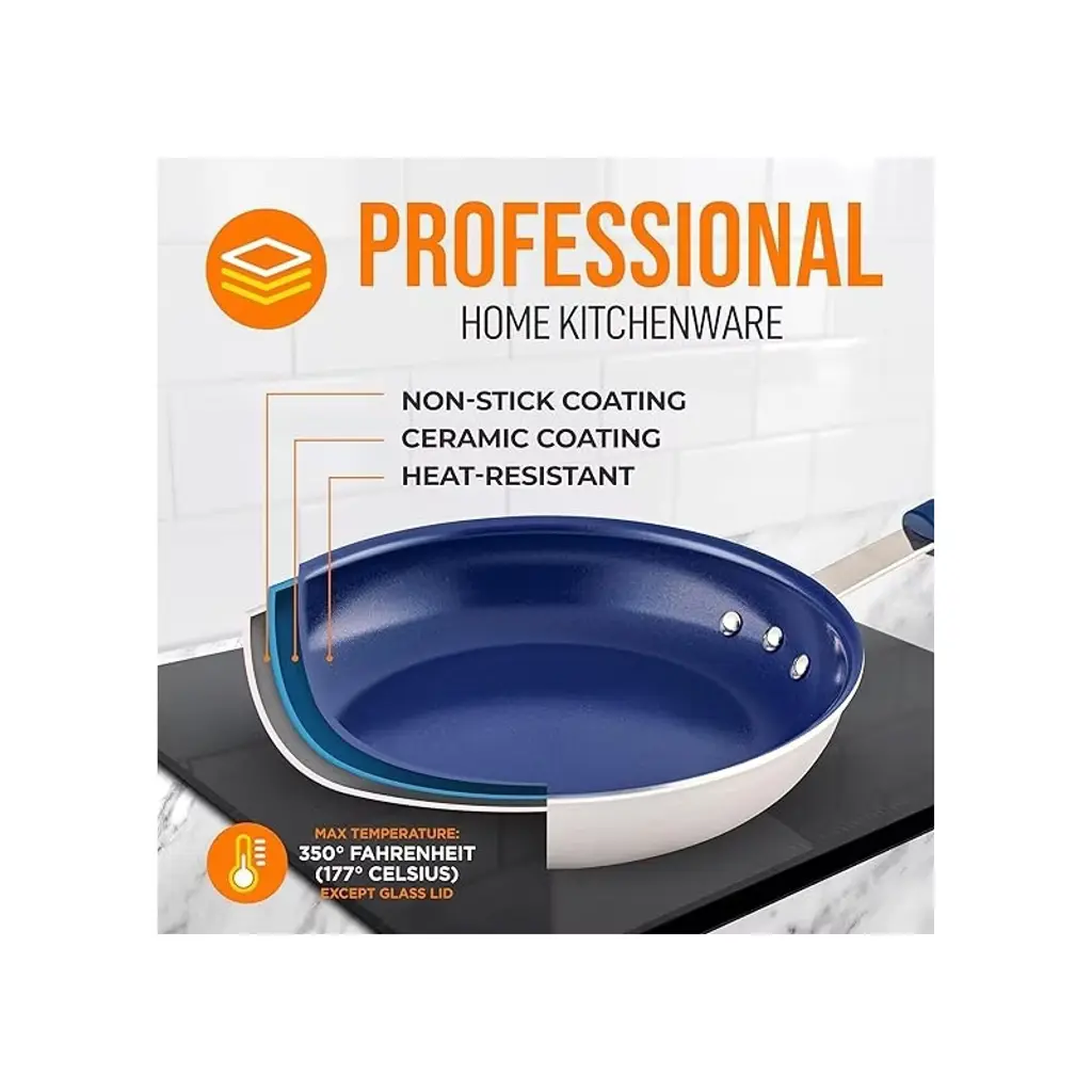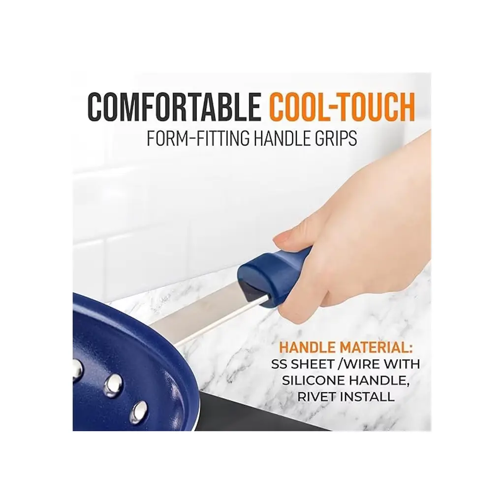 Nutrichef 10" Medium Fry Pan - Medium Skillet Nonstick Frying Pan With Silicone Handle, Ceramic Coating, Blue Silicone Handle