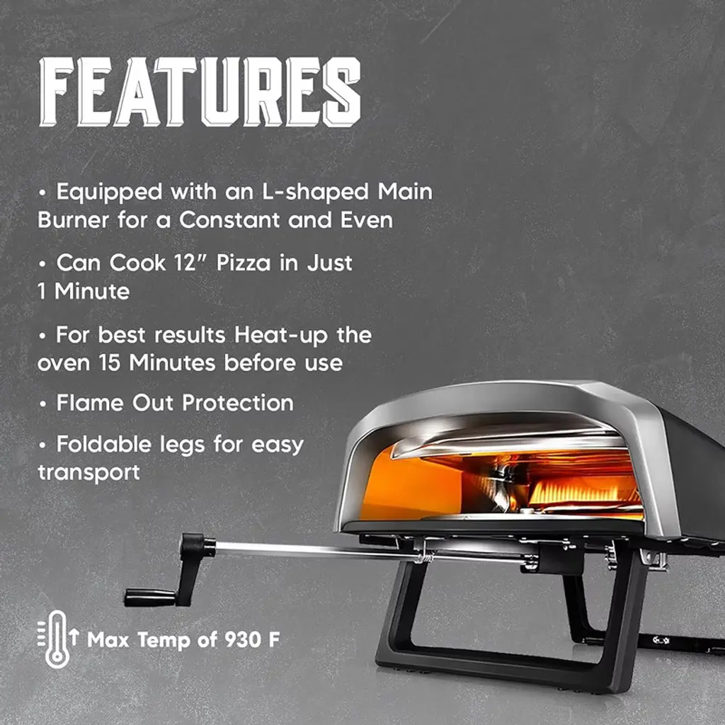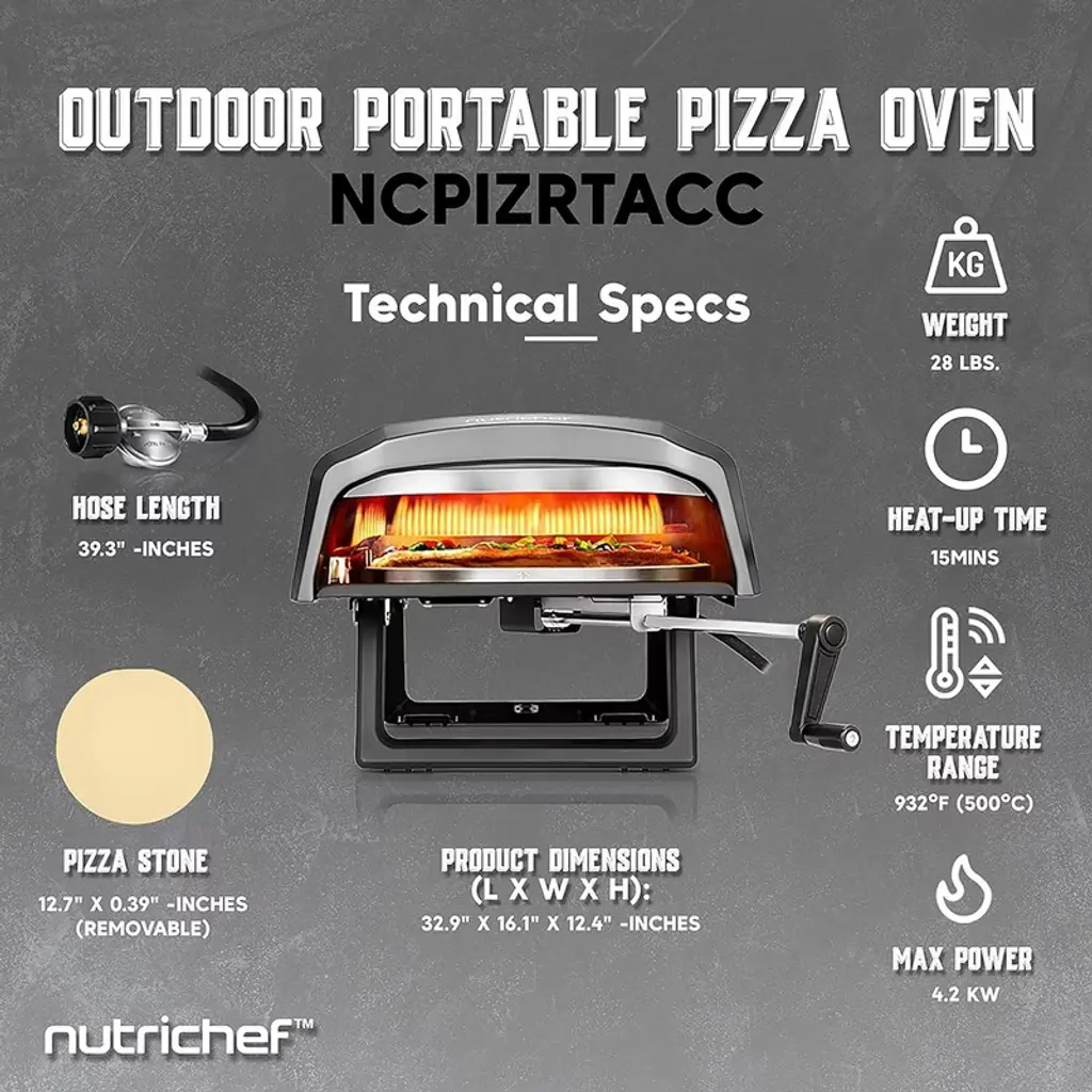Nutrichef Outdoor Pizza Oven With 360° Rotating Pizza Stone