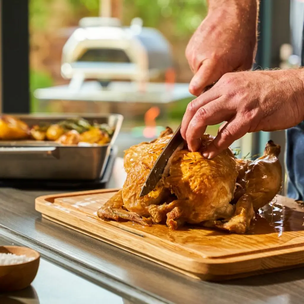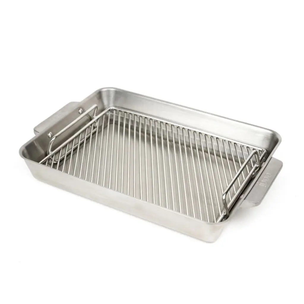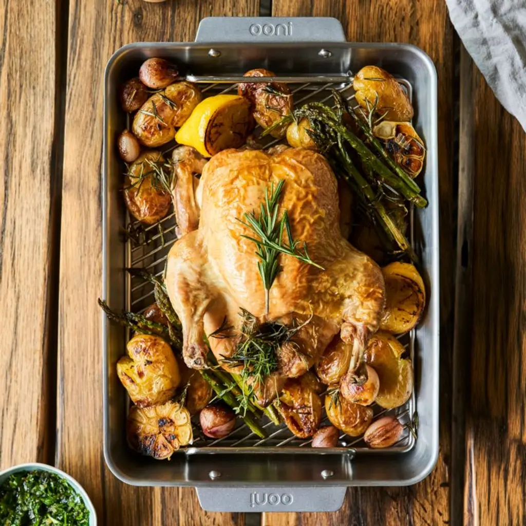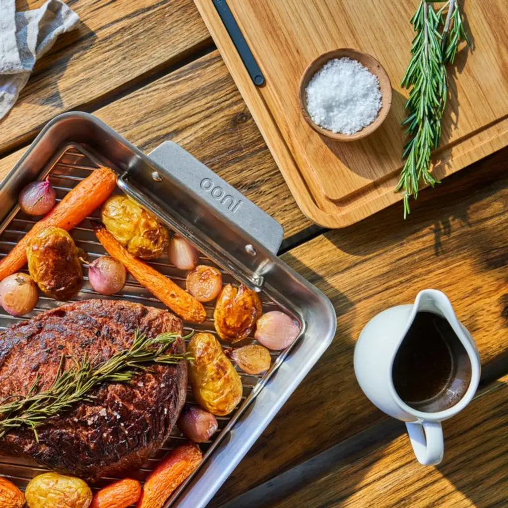 Ooni Large 17.5" Stainless Steel Roasting Pan With Rack And Cutting Board Set