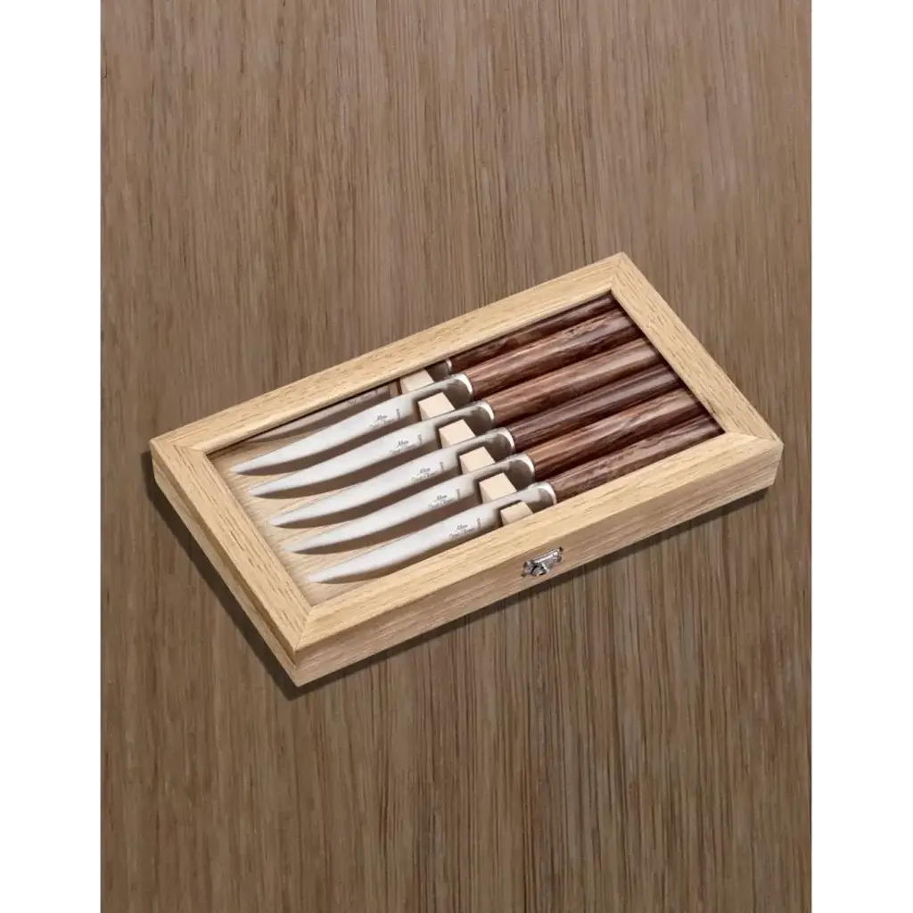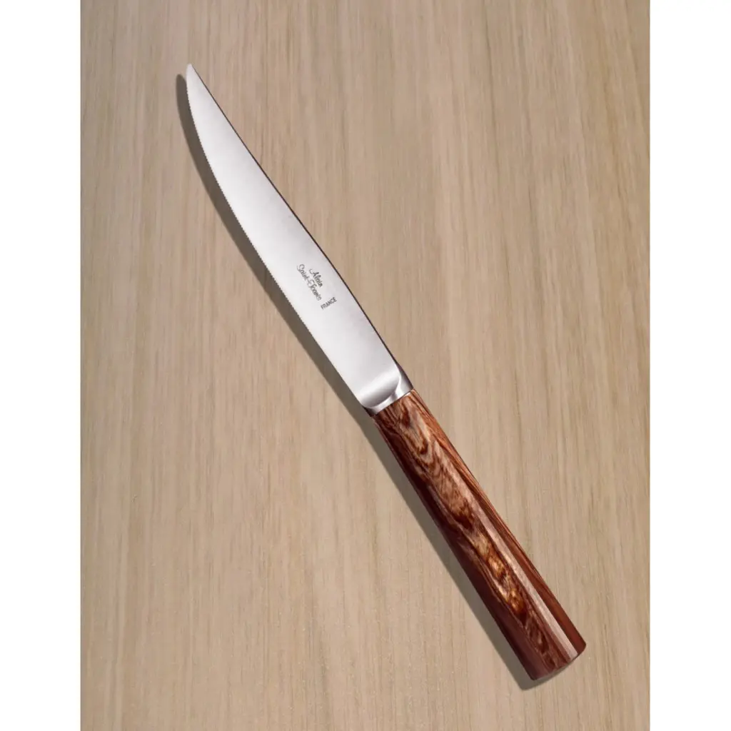 These items are made from a resin which looks like natural materials and may be variable in appearance. Alain Saint Joanis is a family-owned company that has been creating and manufacturing fine flatware in the purest tradition of French cutlery since 1876. These top-of-the-line collections are made with the finest quality silverplate and 18/10 stainless steel, with handles handcrafted from authentic, raw materials such as exotic woods, resins and enamels. All Alain Saint Joanis flatware is hand-assembled and hand-polished in France, and is dishwasher safe. Five-piece setting includes dinner knife, dinner fork, salad fork, soup spoon, and tea spoon.