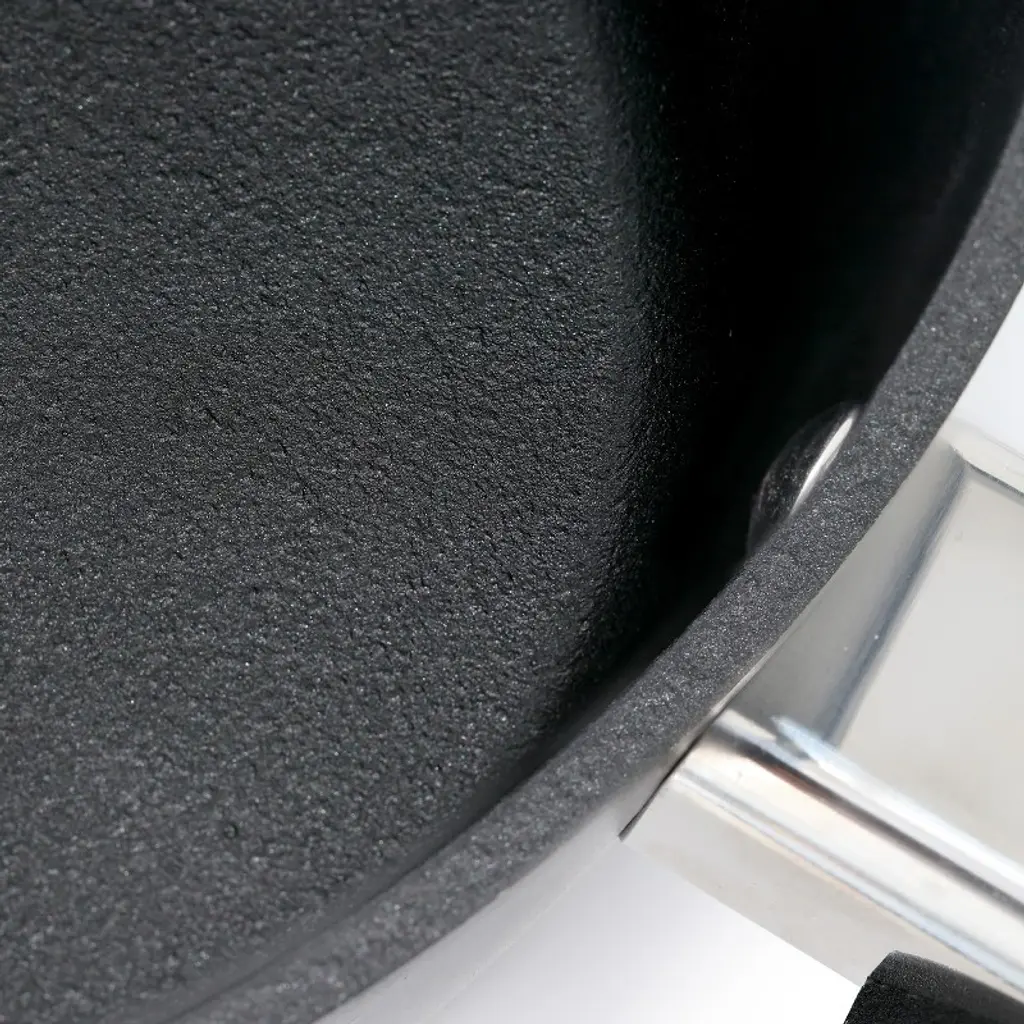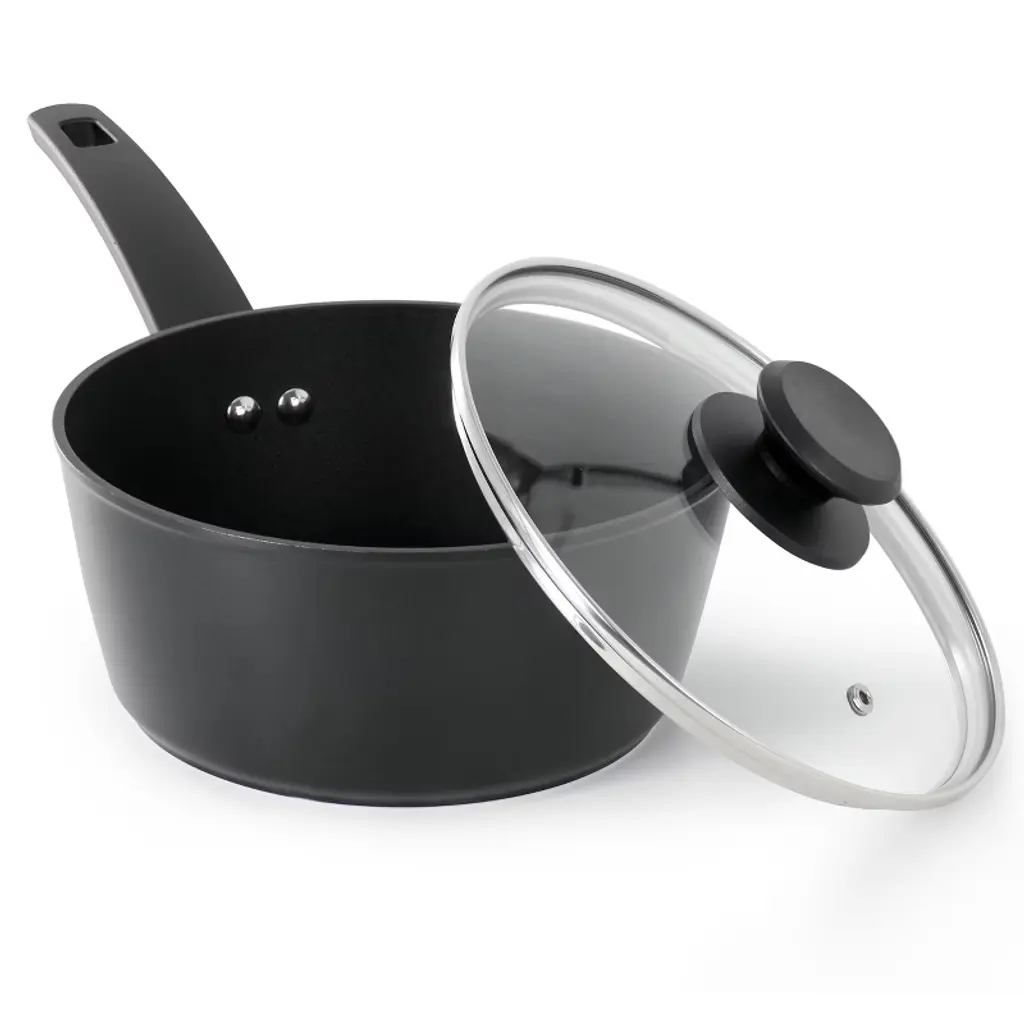 Take your cooking up a notch with the Oster Connelly 2.5 Quart Textured Nonstick Aluminum Saucepan. This essential kitchen tool is crafted from aluminum for durability, bakelite handles to stay cool while cooking, and a vented tempered glass lid for easy monitoring. The sauce pan also comes built with an induction ready base, making it safe for all stove-tops. The textured nonstick surface is scratch resistant for a longer lasting finish. Use the pot to create thick sauces, personal soups, or to cook pasta.