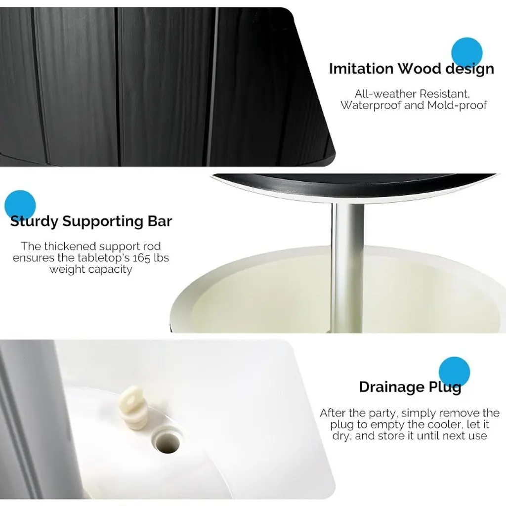 Outdoor Cooler Table, Height-adjustable Outdoor Cool Bar W/ 10 Gallon Beer And Wine Cooler, Patio Cooler Ice Cool Bar For Deck Pool Party