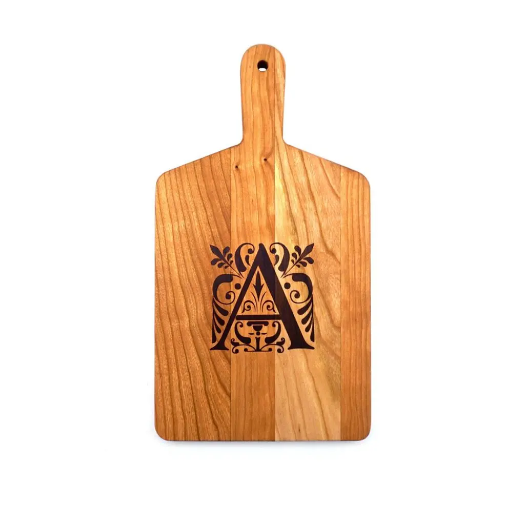Serve crudites and charcuterie with a personal touch on this stunning monogrammed serving board. Composed of gorgeous renewable mango woodfrom trees no longer producing fruitand white marble, the board boldly spells out the oversized letter "P" with gleaming inlaid brass in a crisp, modern font. Highly skilled craftspeople carve, inlay and finish each board by hand, creating an individualized housewarming, graduation or wedding gift. Due to the natural materials and handcrafted techniques, each monogrammed serving board is unique.By choosing FSC®-certified products, you are supporting responsible management of the world's forests.