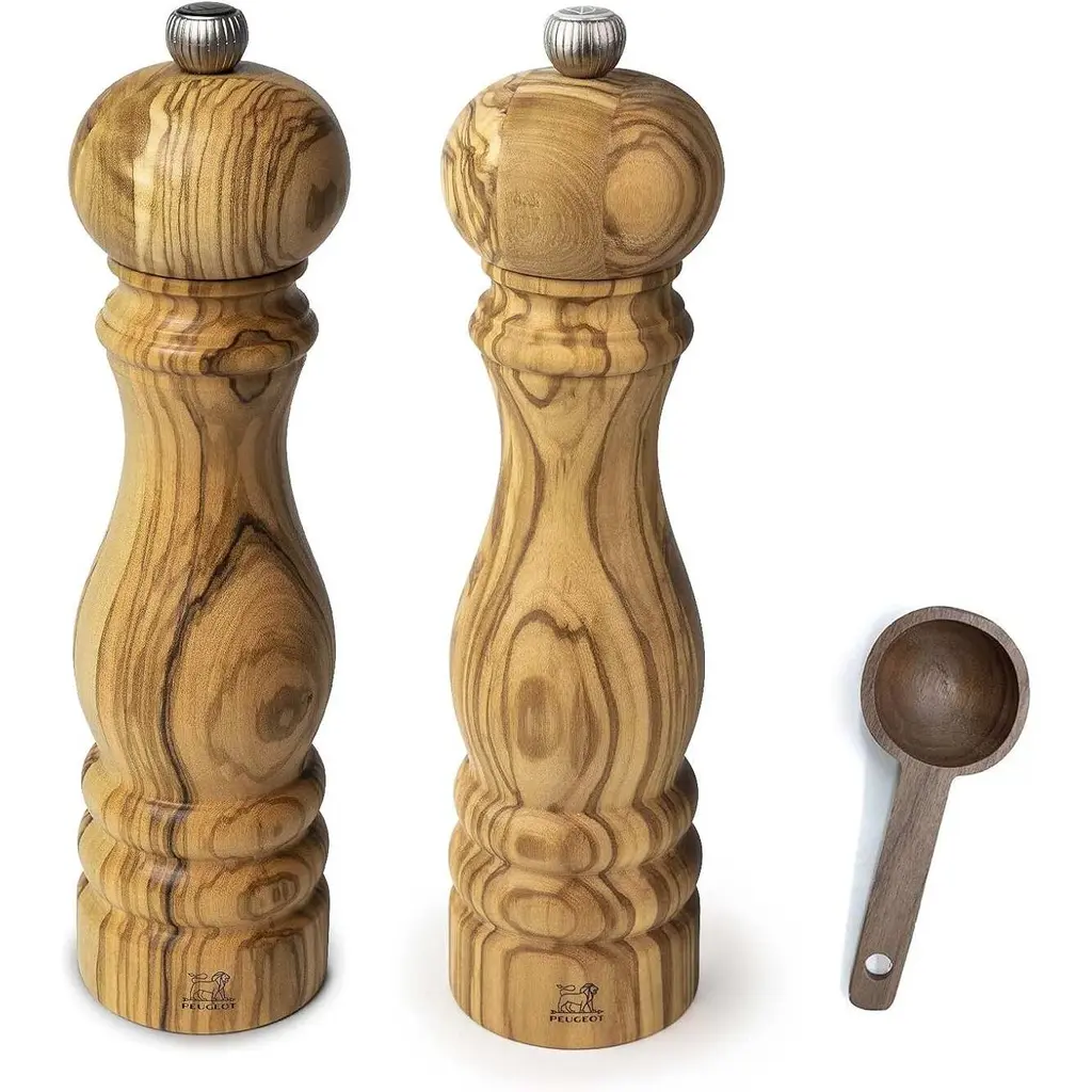 Paris Olivier Salt Mill Gift Set Olive Wood - With Wooden Scoop (7 -Inch, Salt Mill W/ Scoop) - 2 Piece