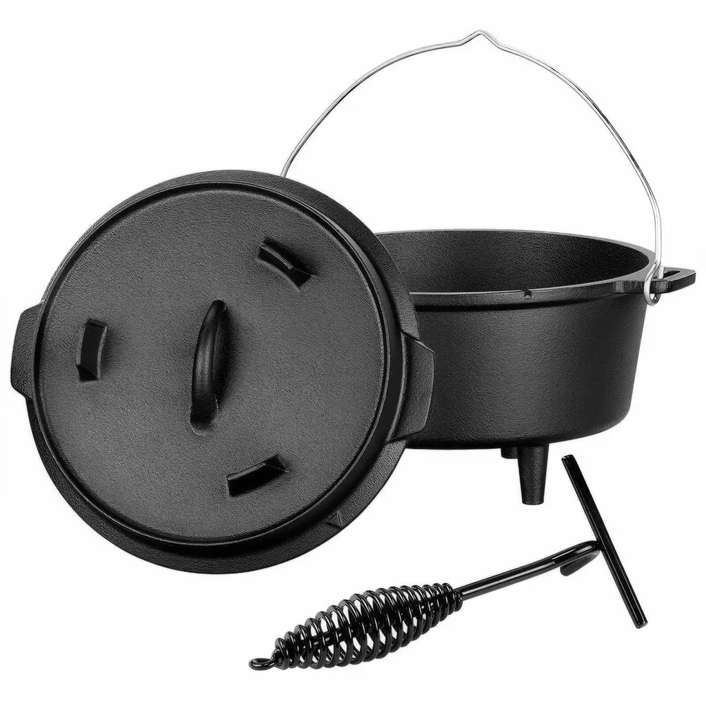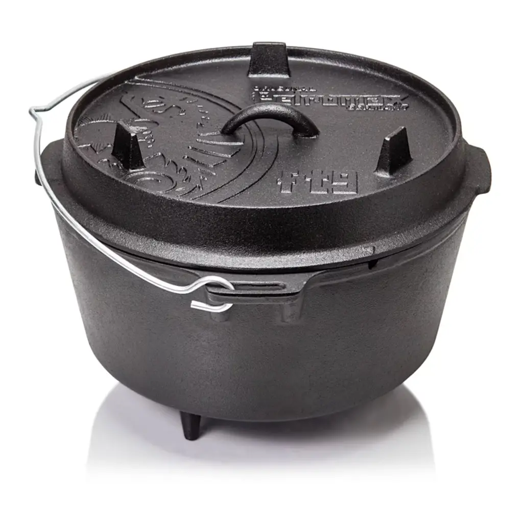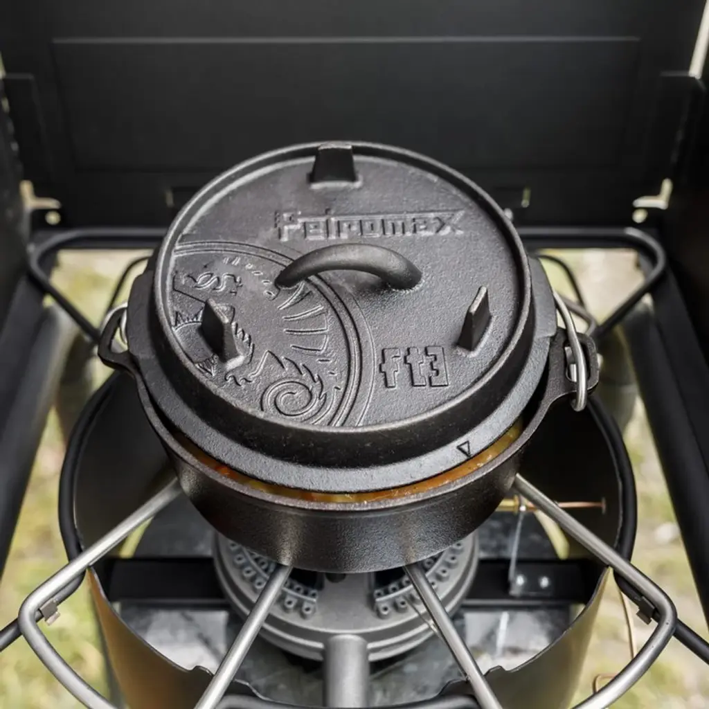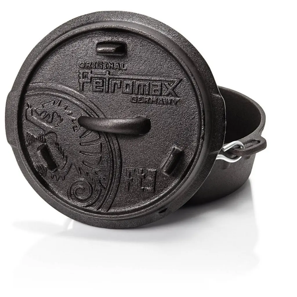 The original Petromax Dutch Oven is ideally suited to cooking and baking in the open air or in the kitchen at home. Cast-iron pots exist since the 18th century. Even at that time the unique properties of cast iron were appreciated. With the Dutch Oven, Petromax takes up this tradition and provides the Dutch Oven with a large number of refined details. Imported. Cast iron Petromax qualityThanks to the amazing characteristics of cast iron and the special structure of the surface, warmth is efficiently stored and distributed. The pre-treated surface (grade 3 soybean oil seasoned finish) makes a first seasoning unnecessary, and the sturdy Dutch Oven is ready to use, after rinsing it. In the open air, it is used on an open fire or with charcoal and briquettes. The raised edge of the lid makes it possible to place embers or charcoal also on the Dutch Oven. The Dutch Oven is thus heated from all sides and is for example suitable for baking bread.Great cooking pleasure thanks to sophisticated detailsThe Dutch Oven can be safely lifted thanks to a sturdy handle, and a thermometer hole makes it possible for you to check the temperature without opening the lid. Another special feature is that the upturned lid can also be used as a pan. Beside all these ingenious details, the Dutch Oven has a traditional Petromax design: The lid is decorated with the elegant dragon logo, which has always stood for excellent quality and top-of-the-range products. Soups, meat dishes, as well as stews, casseroles and even cakes, can be prepared outstandingly in the Dutch Oven.