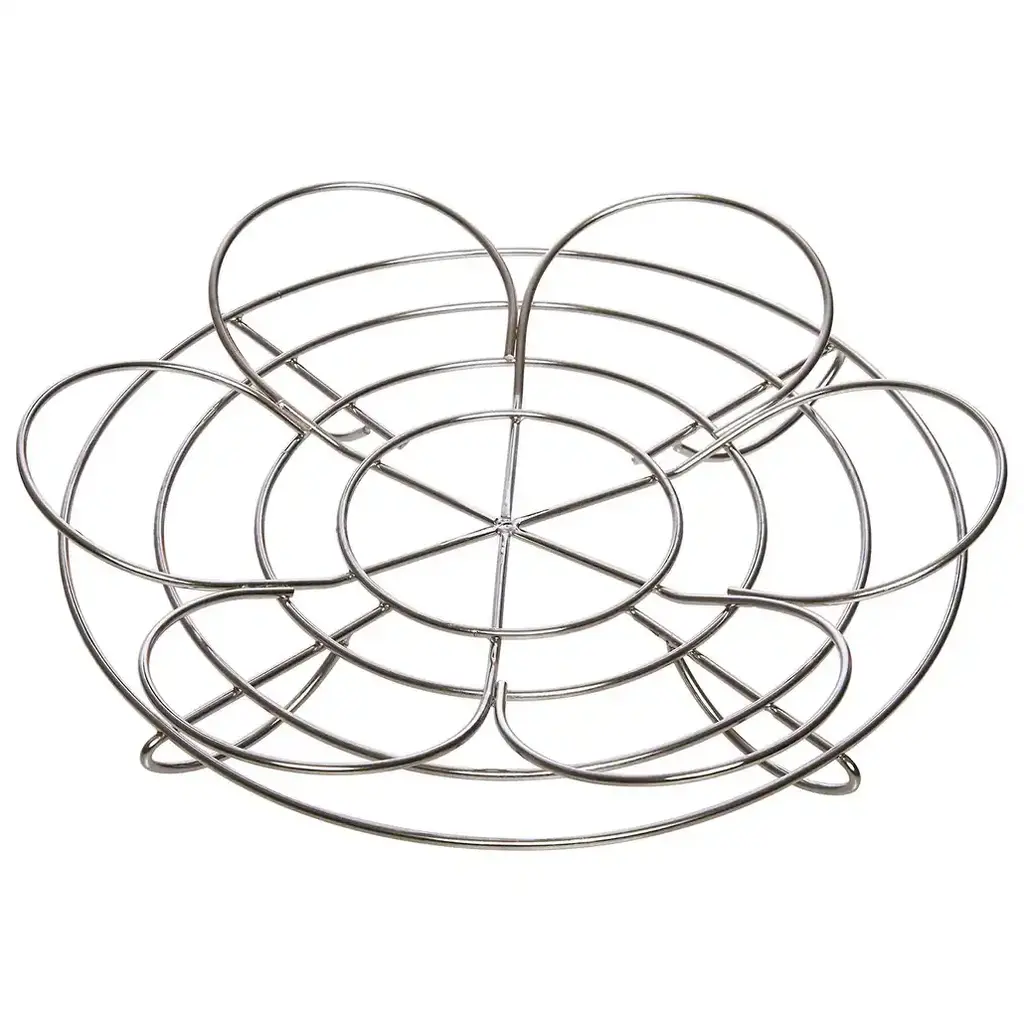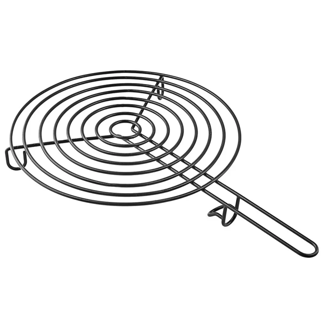 The trivet made of solid cast iron manages first-class heat distribution exactly what is needed for baking in the Dutch Oven. For the trivet stands on three knobs, you succeed in braising, simmering and baking with the cast-iron trivet in the Dutch Oven without burning anything. You can use it right away thanks to the (grade 3 soybean oil) pre-seasoned finish without needing to season it first.In the fire and as a trivetWhen grilling directly on the fire, it leaves perfect grill marks on the piece of meat. Or you can put the cast-iron trivet in the fire and use it as a surface where to put down a percolator, a teakettle and so on. And it can also be used as a practical trivet on a table.Material: cast iron. Dimensions: 9" OD x 0.3" H. Weight: 2.1 lbs..