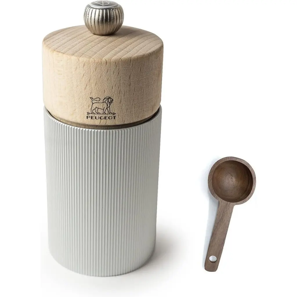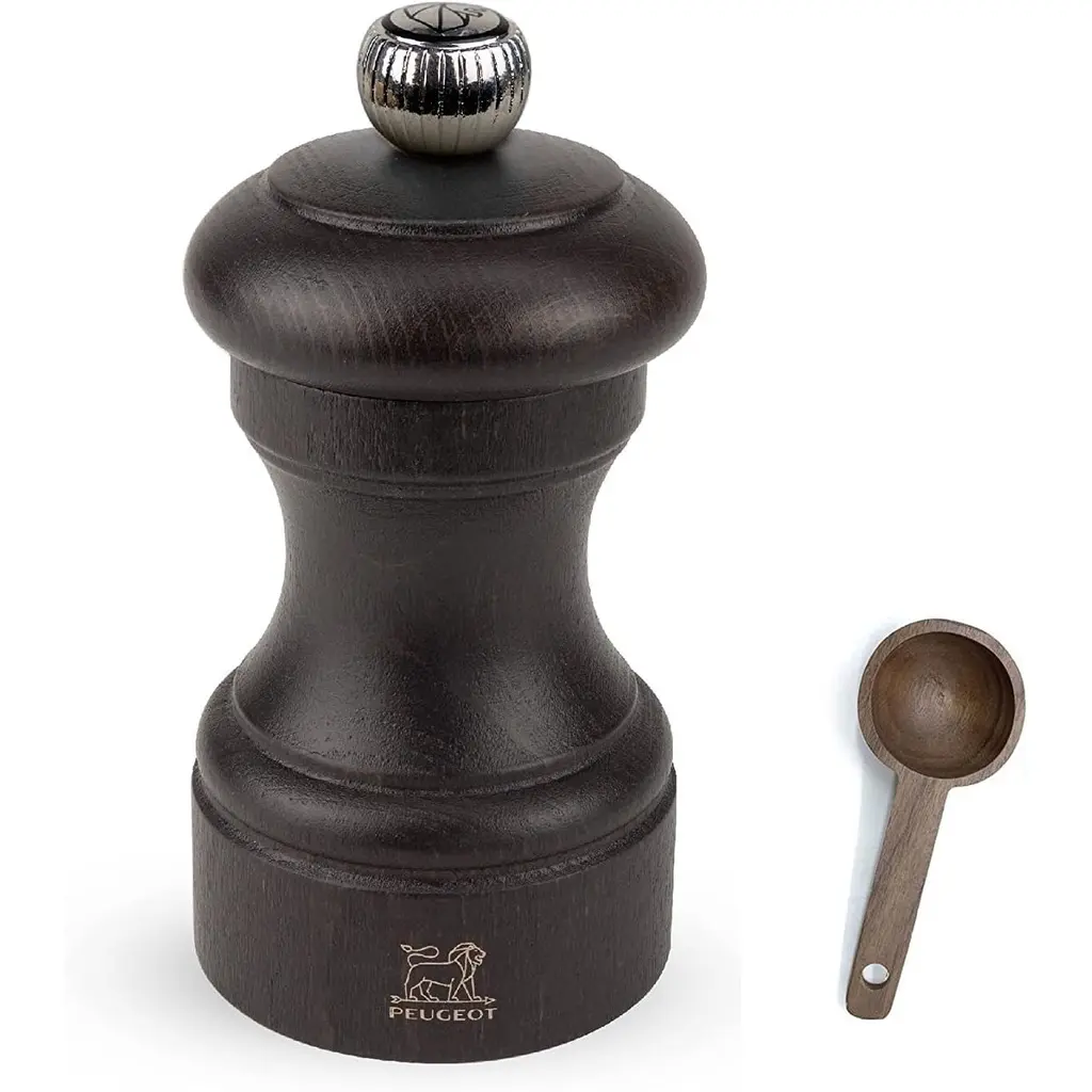 Peugeot Bistro Antique Gift Distressed Beechwood 4- Inch Pepper Mill, With Wooden Spice Scoop - Brown - 2 Piece
