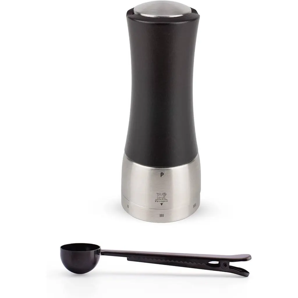 Peugeot Isen U'select Salt & Pepper Mill Gift Set, 18cm-7In, Black - With Stainless Steel Spice Scoop & Clip - Black - 3 Piece