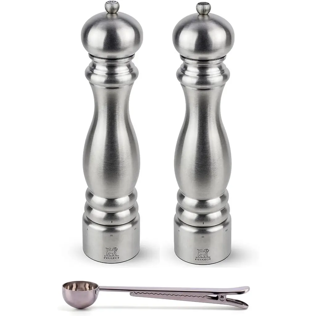 Peugeot Paris Chef Carbone U'select Stainless Steel 22cm 9 Inch Carbon Finish Pepper Mill W/ Copper Salt Mill - 3 Piece