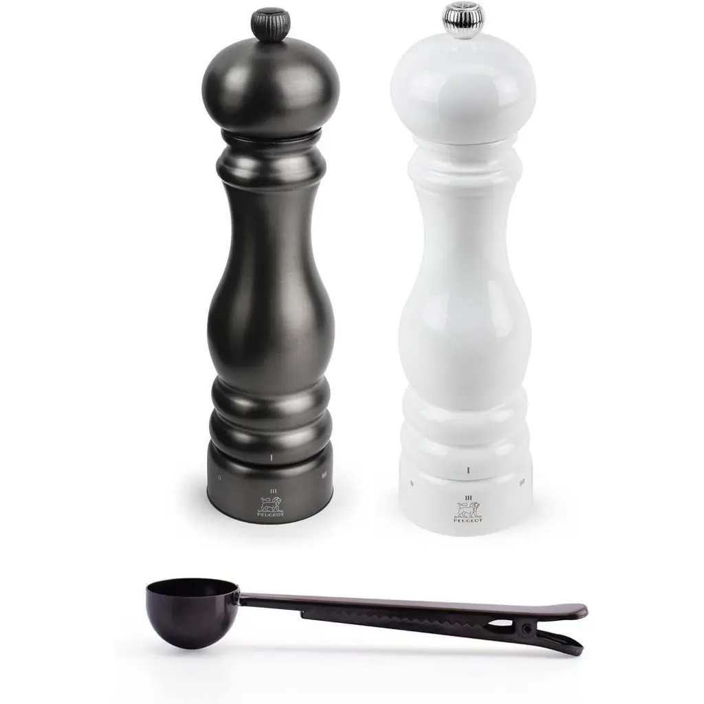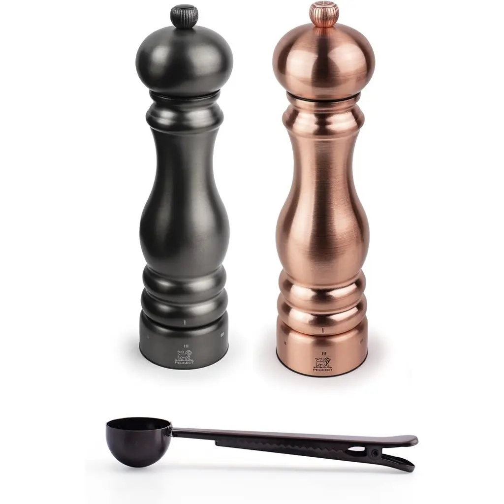 Peugeot Paris Chef Carbone U'select Stainless Steel 22cm 9 Inch Carbon Finish Pepper Mill W/ Natural Wood Salt Mill - Multi - 3 Piece