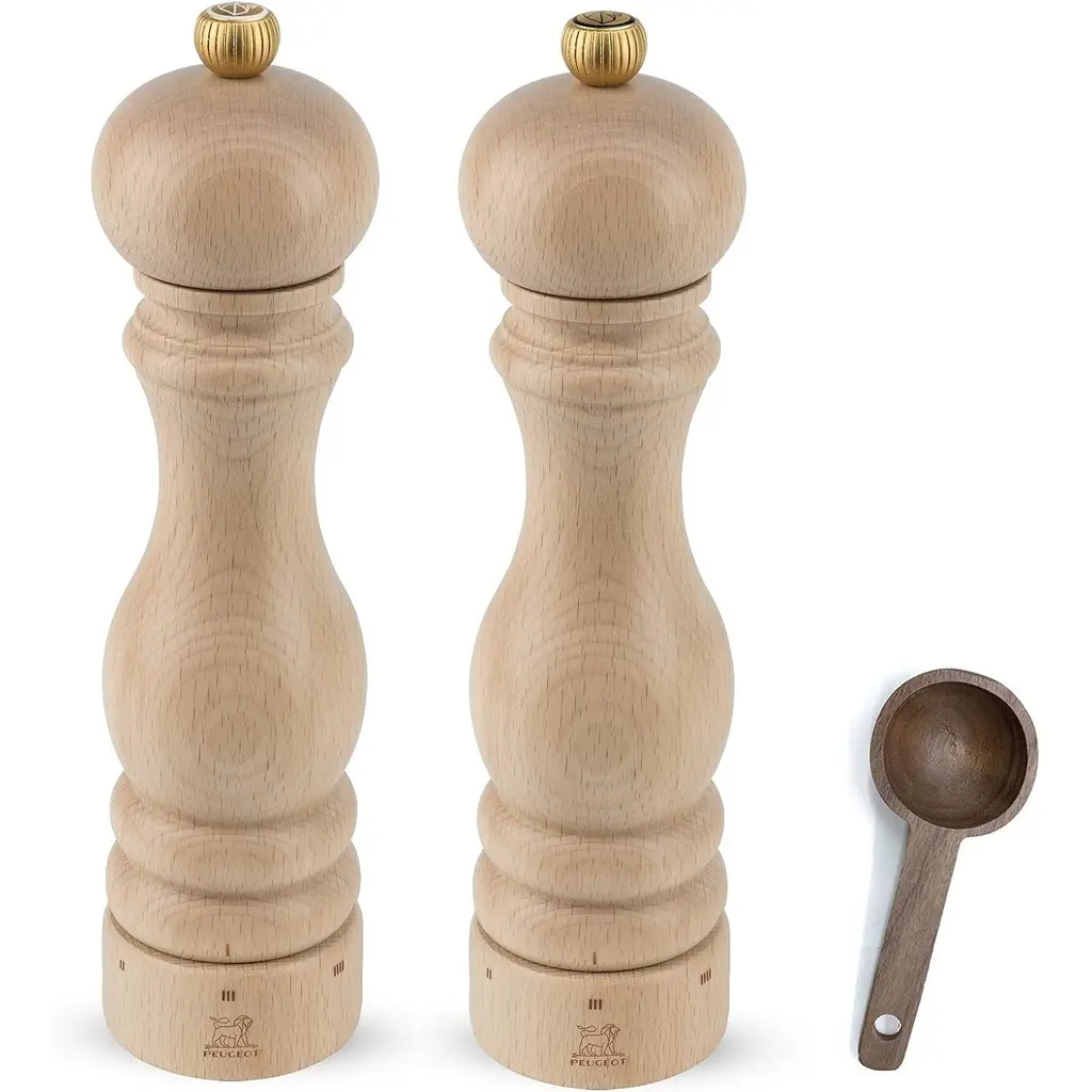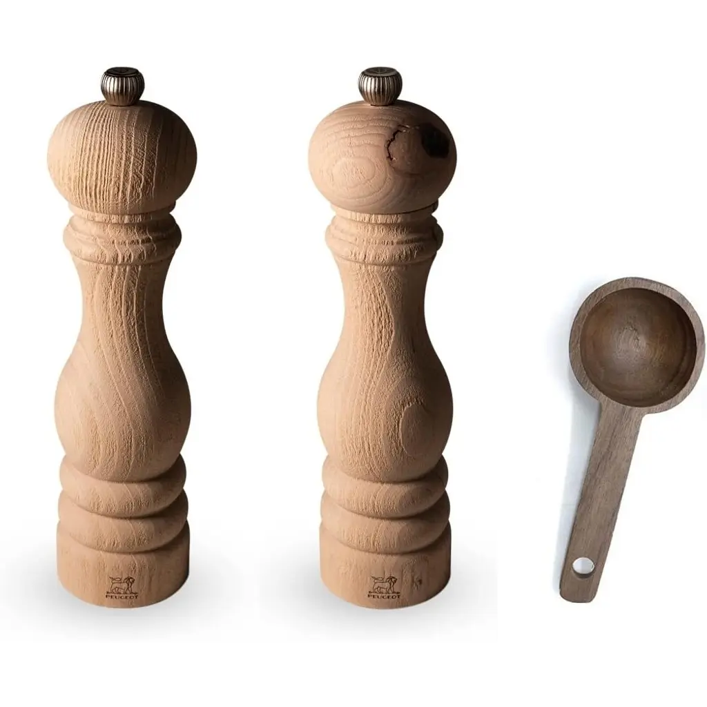 Peugeot Paris Nature 9 Inch Pepper Mill - With Wooden Spice Scoop - Beige - 2 Piece