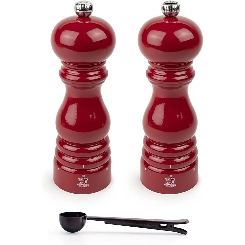 Peugeot Paris U'select 4.75-Inch Salt & Pepper Mill Gift Set, Passion Red - With Stainless Steel Spice Scoop/bag Clip - Red - 3 Piece