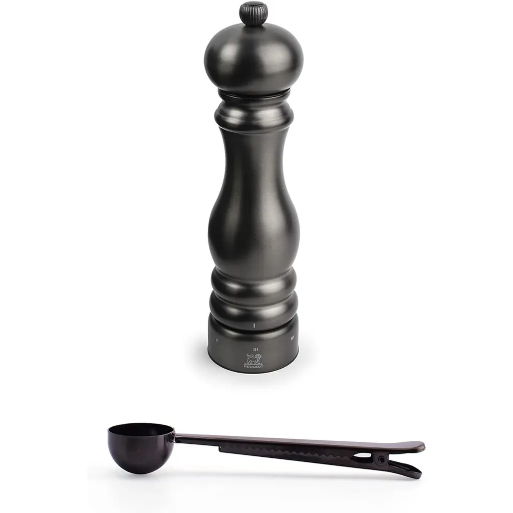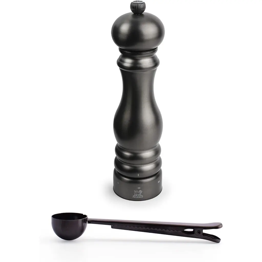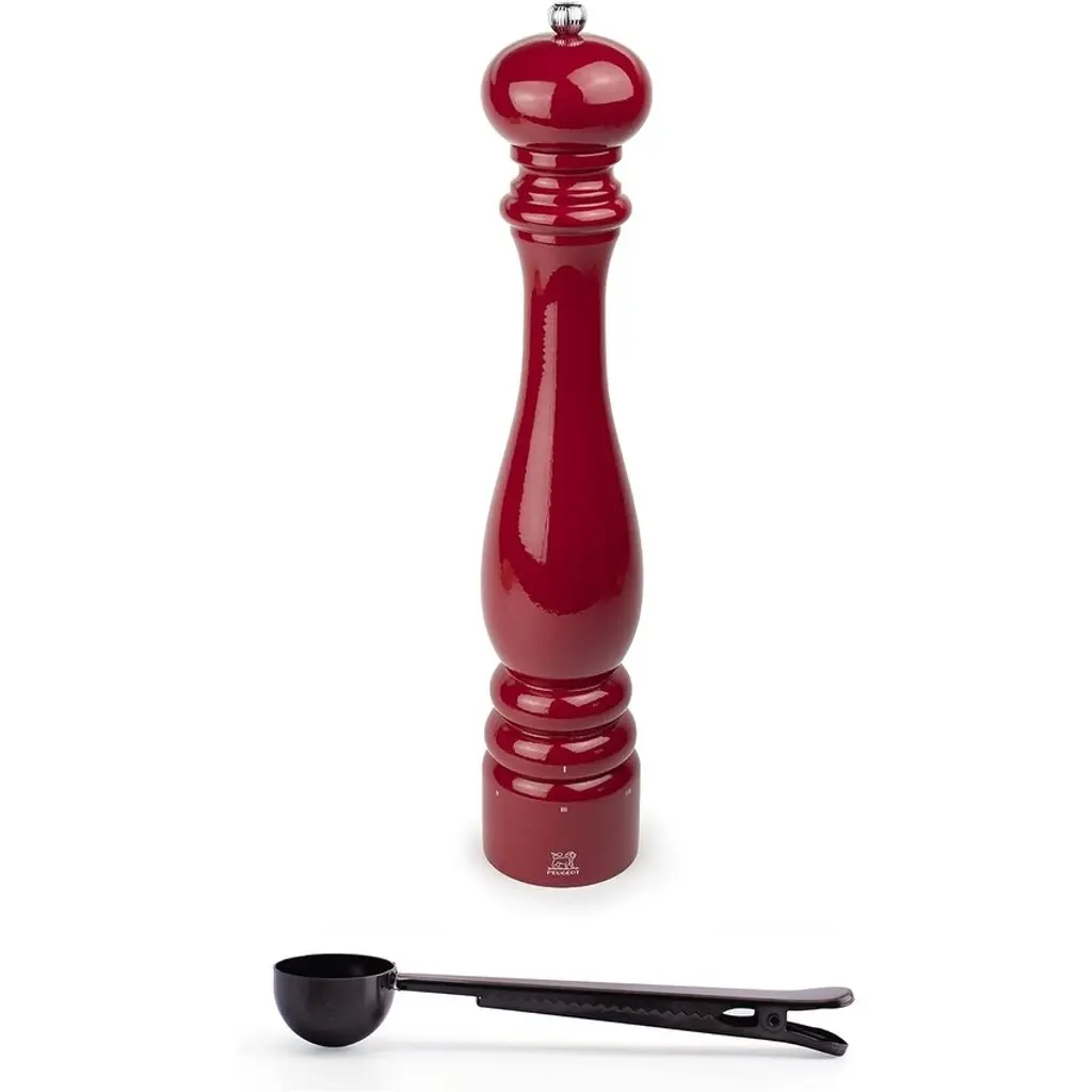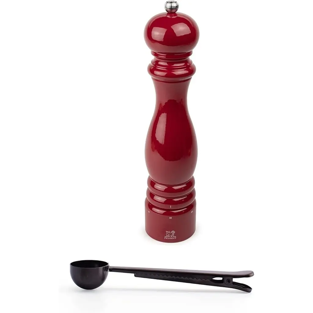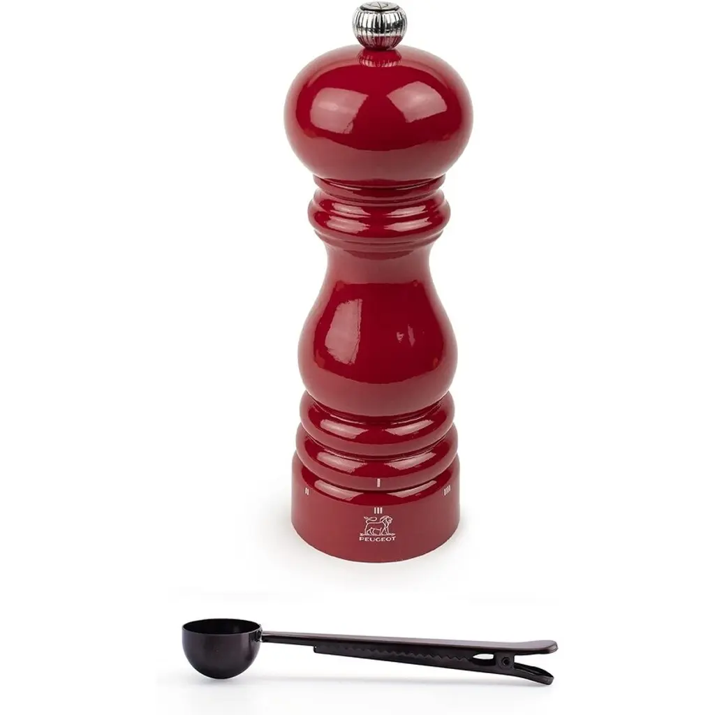 Peugeot Paris U'select 7-Inch Salt Mill Gift Set, Passion Red - With Stainless Steel Spice Scoop/bag Clip - Red - 2 Piece