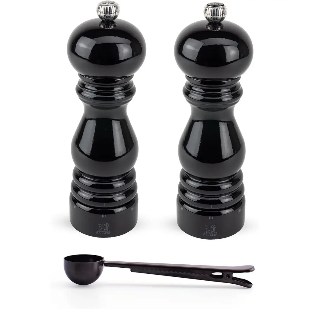 Peugeot Paris U'select Salt & Pepper Mill Gift Set, Chocolate - With Wooden Spice Scoop (5 Inch) - Black - Black - 3 Piece