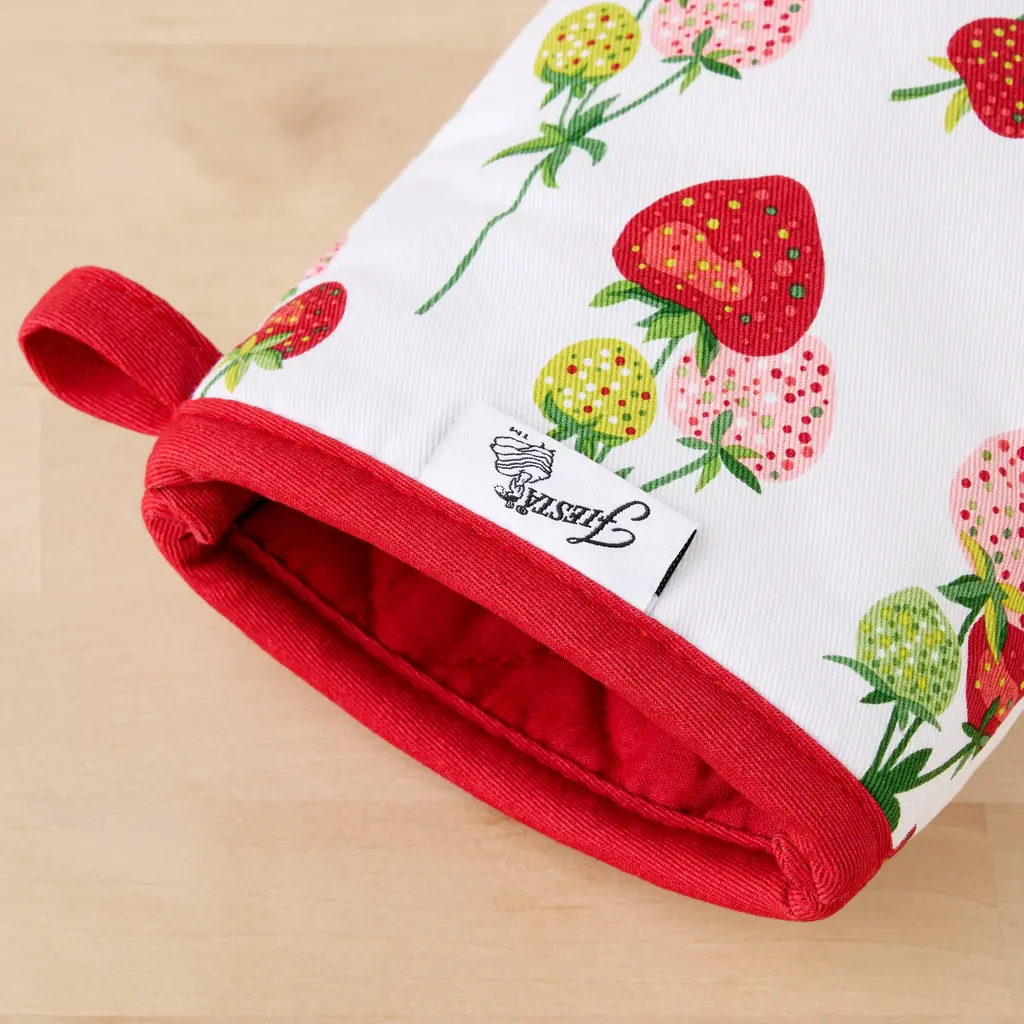 Quilted Cotton Oven Mitt With Mushrooms Pattern And Loop - Multi