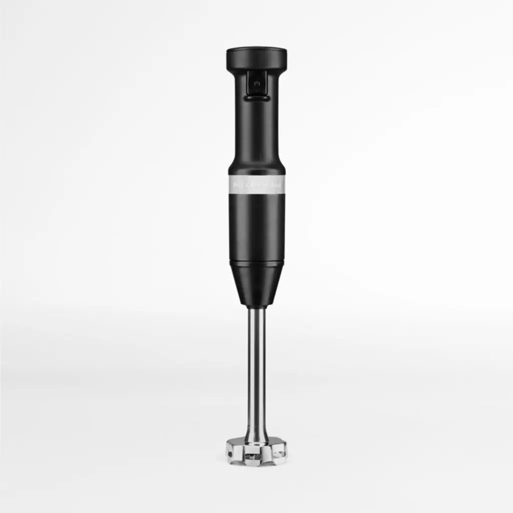 Designed for the perfect puree. This KitchenAid® Variable Speed Corded Hand Blender features an 8" removable blending arm with 4-point stainless steel blade to blend everything from smoothies, to milk shakes, soups, sauces and so much more. It is easy to use with the variable speed trigger switch and includes a US patented removalpan guard to help protect your cookware. The 3-Cup BPA-Free Blending Jar with lid is great for individual blending jobs, and can be used to serve direct from or to store your blended creation for a later use.