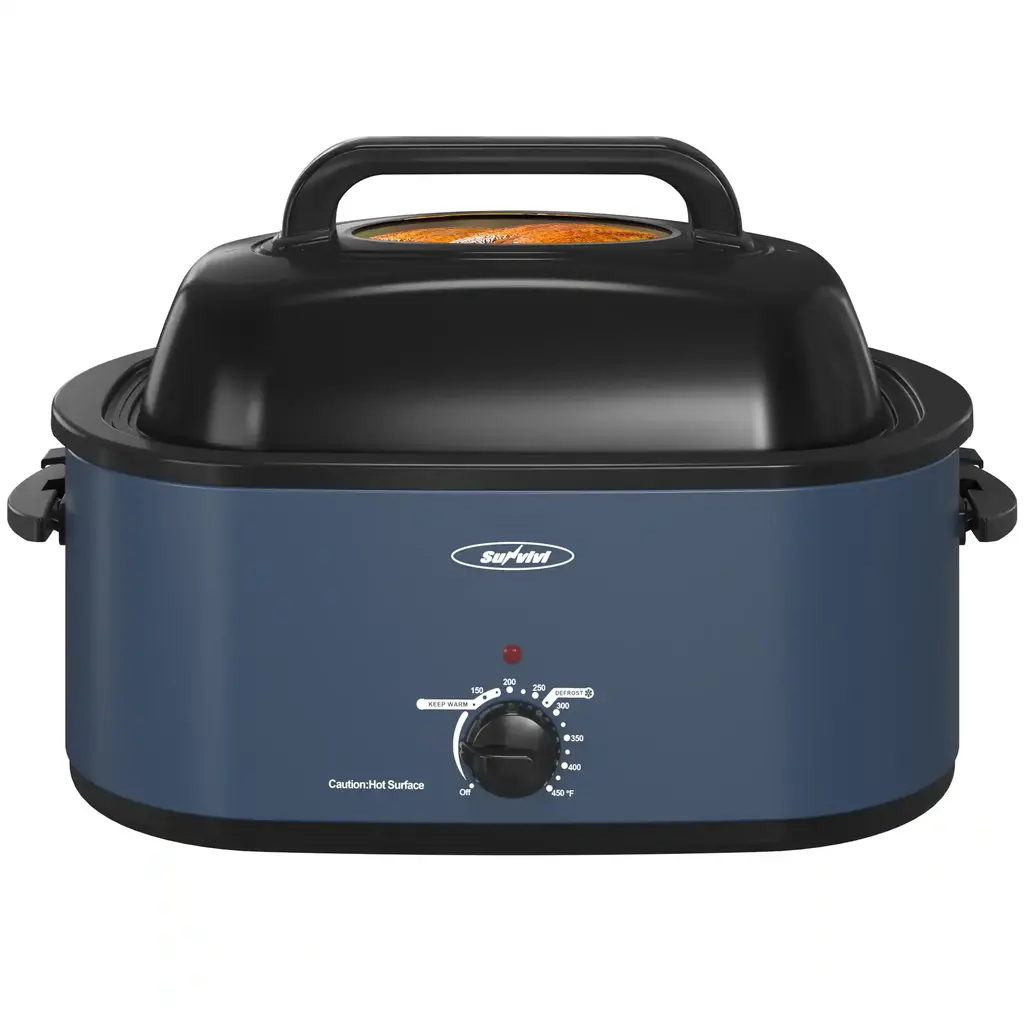 The Royalcraft Roaster Oven with Removable Pan is the perfect kitchen appliance to slow roast meats and prepare delicious meals easily. With a large size of 20-Quart/24-Quart, you can cook anything from small servings to a 26-lb/28 lb turkey. The stainless steel inner rack makes it effortless to lift out heavy items. After cooking, the enameled steel baking pan can be removed for quick and easy cleaning.Features:Dimensions: