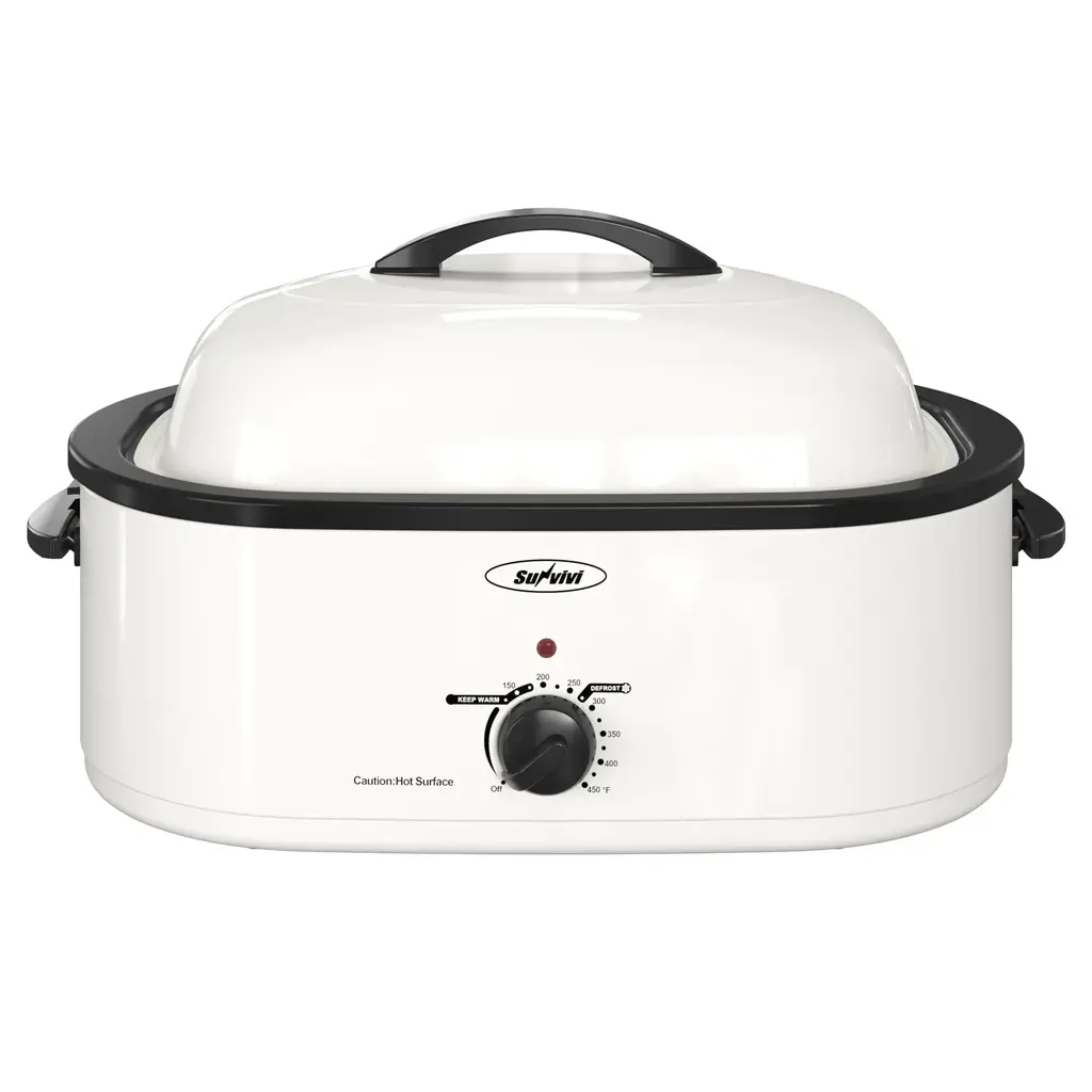 The Royalcraft Roaster Oven with Removable Pan is the perfect kitchen appliance to slow roast meats and prepare delicious meals easily. With a large size of 20-Quart/24-Quart, you can cook anything from small servings to a 26-lb/28 lb turkey. The stainless steel inner rack makes it effortless to lift out heavy items. After cooking, the enameled steel baking pan can be removed for quick and easy cleaning.Features:Dimensions: