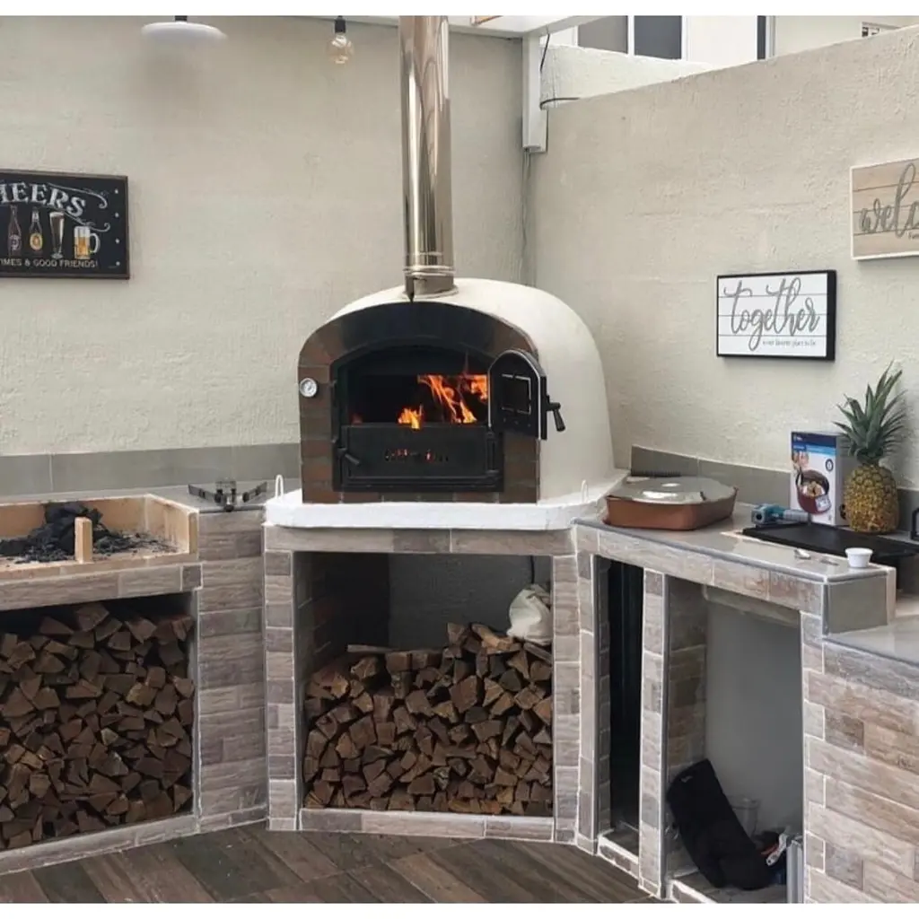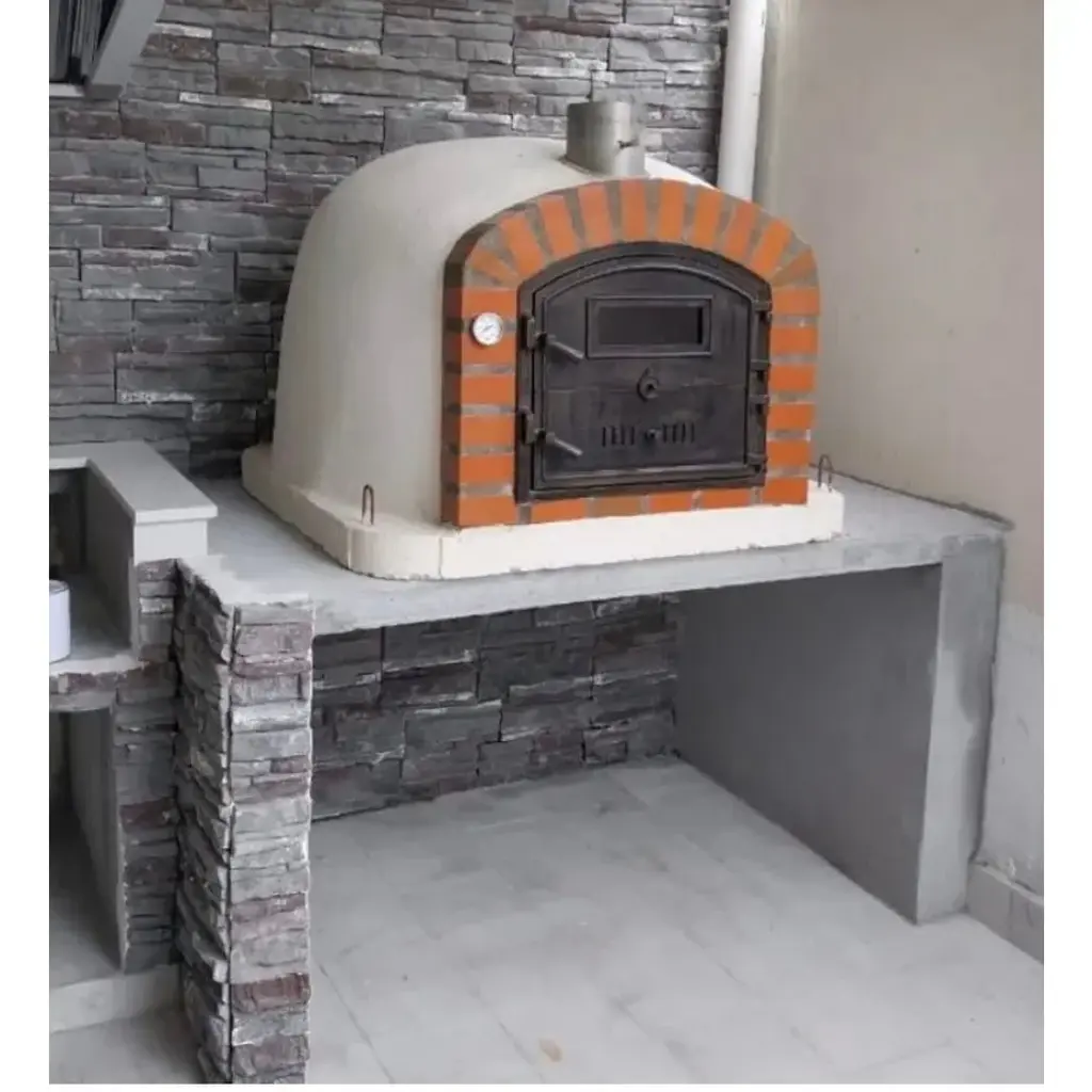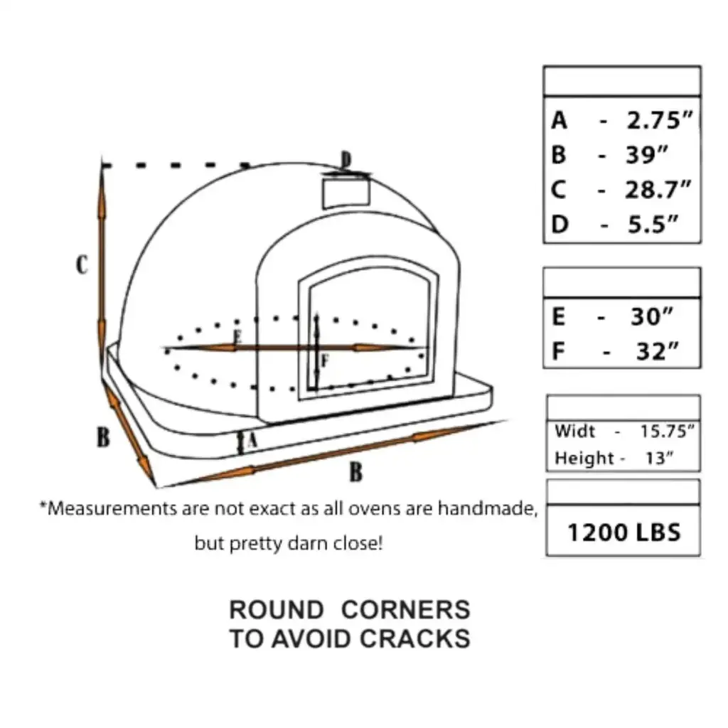 LOVE THIS RUSTIC BRICK ARCH PIZZA OVEN! The Lisboa Rustic Brick Arch Premium Pizza Oven is a masterpiece of authenticity and versatility, perfect for creating true Italian-style pizzas in just 90 seconds! This domed pizza oven was the first model we ever offered and continues to be a favorite. Its higher opening compared to our Pizzaioli and Buena Ventura models makes it rotisserie-capable, adding incredible functionality. Plus, the visible flames provide a cozy ambiance, doubling as a beautiful fire feature or fire pit.The square-shaped door design is perfect for cooking pizzas, casseroles, bread, and mouth-watering rotisseries. Whether you're hosting a party or enjoying a quiet evening, this oven guarantees delicious results every time.WHY CHOOSE AUTHENTIC BRICK OVER CLAY?Our ovens are made with authentic brick, not clay,there’s a big difference! Each oven is handmade in Portugal and triple-insulated to keep the outside cool while the inside reaches blazing hot temperatures.Inner Layer: Authentic firebrick and mortar.Middle Layer: Our patented Rockwool Insulation, secured with metal batting.Outer Layer: Durable refractory cement for added strength.PREMIUM HARDWARE & DESIGNThe Lisboa features a traditional terracotta brick facade with a durable black non-rust cast aluminum door, chimney cavity, and stainless steel chimney. The door includes a high-heat viewing window, allowing you to monitor your creations without opening the oven.Unlike other brands, Authentic Pizza Ovens never use galvanized or zinc coatings. Our ovens can be customized with high-heat paint or tiles to match your design preferences. Simply cure your oven first and treat it with Ultra Fire (included in the package) before painting or tiling.PACKAGE INCLUDES:Cast High-Grade Aluminum Door: Barn/dutch-style door opens left to right.Stainless Steel Chimney: 6” spout with flue/damper (pipe extensions and cap sold separately).Ceramic Portuguese Baking Dish: 10” x 14.5” x 3” for versatile cooking.Thermometer: 0-500°C for precise temperature monitoring.Ultra Fire Patch Kit: For addressing superficial cracks (see our video guide).SPECIFICATIONS:Each oven is handcrafted, so weights and dimensions may vary slightly:Exterior Dimensions: 39” W x 31” H x 39” DInterior Dimensions: 31” W x 19” H x 31” DDoor Dimensions: 15.5” W x 12” HChimney Dimensions: 5.5” W x 6” HWeight: Approx. 1,300 lbsCARE INSTRUCTIONSTo ensure your oven lasts for years:Protect it from rain, snow, sleet, and harsh weather when not in use.Use an all-weather cover, available on our Accessories Page.Upgrade your outdoor cooking experience with the Lisboa Rustic Brick Arch Premium Pizza Oven, the perfect combination of style, functionality, and authenticity. Get yours today!