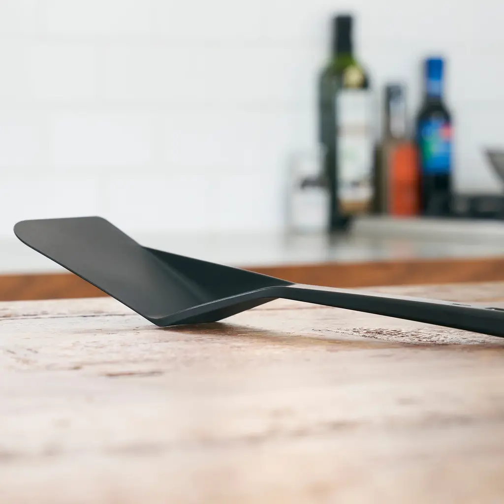 Mix, flip, scoop and serve easily with just one tool. The Scoop Spatula features a flexible tip that helps you blend ingredients together smoothly while cooking. This multi-use, lightweight kitchen tool is heat-resistant up to 392°F and is perfect for stir-fries, sauteing, scooping and serving straight from the pan and more. The Scoop Spatula is made in Japan from nylon resin and measures 1.4h x 3w x 11.2"d. Dishwasher-safe.