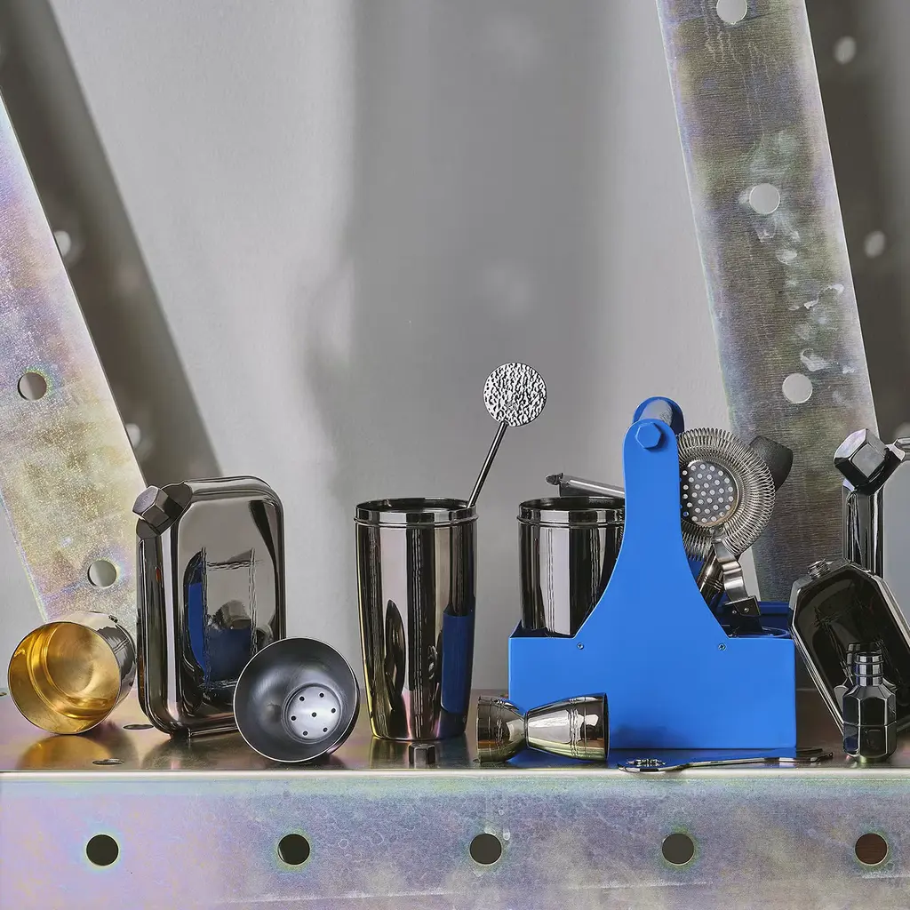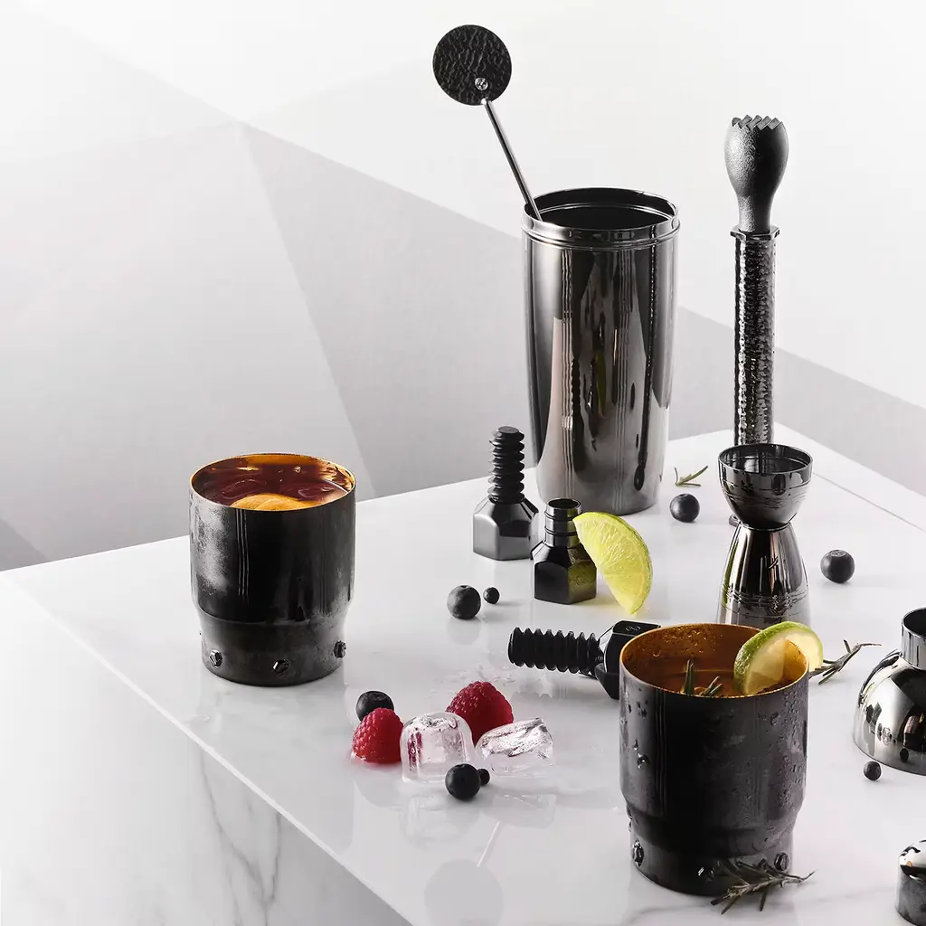 Taking inspiration from the world of mechanics, the products in this series are cleverly designed and a delight to use. This stylish Shaker is part of the Barock Collection in collaboration with the famous Lebanese designer Samer Alameen. Elegant and functional, the 600 ml container is crafted in titanium plated brass and is gilded on the inside.