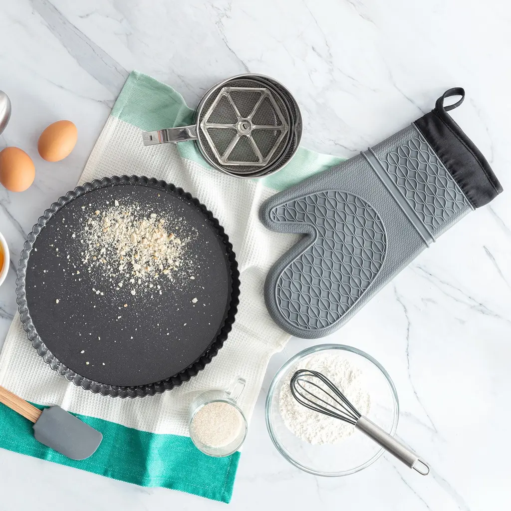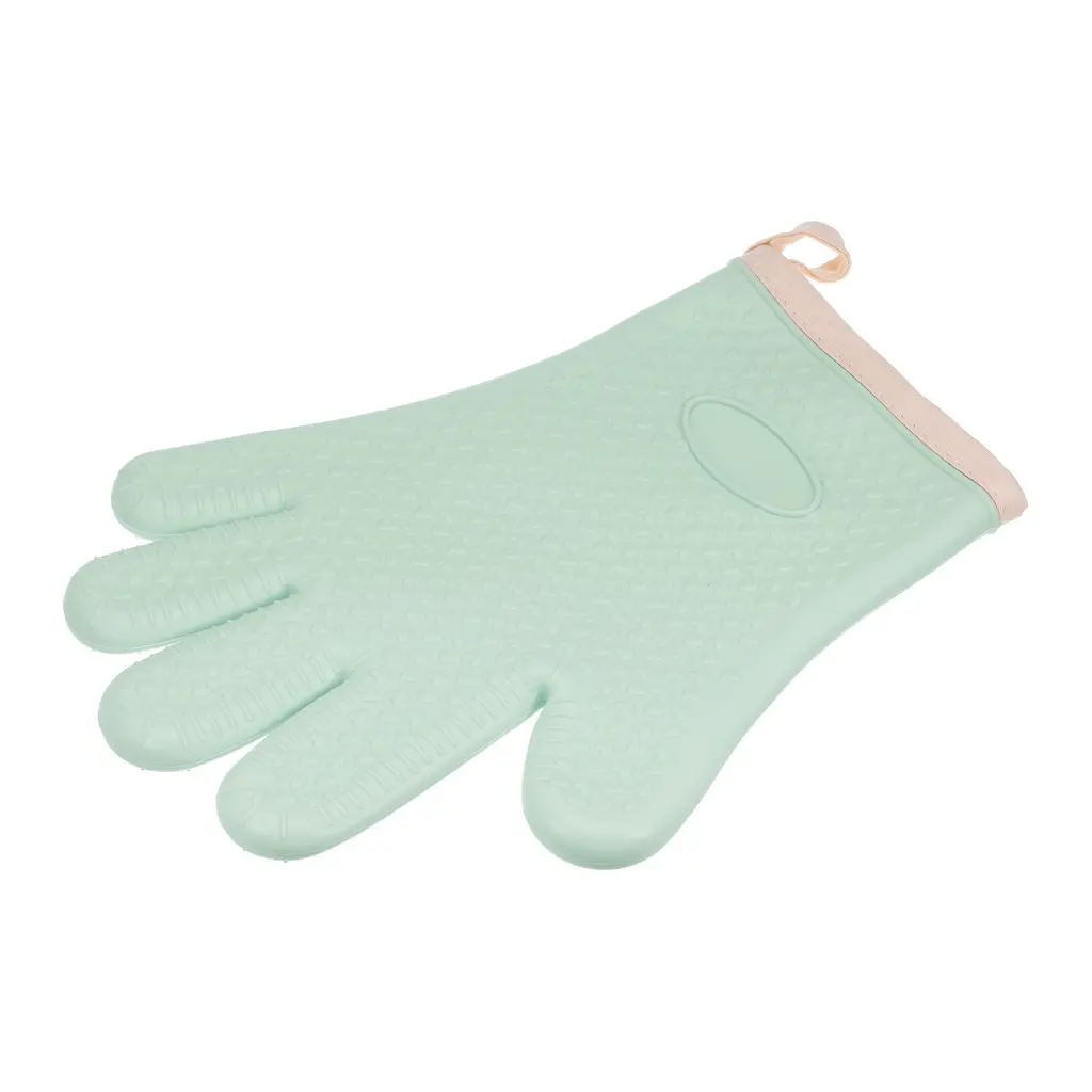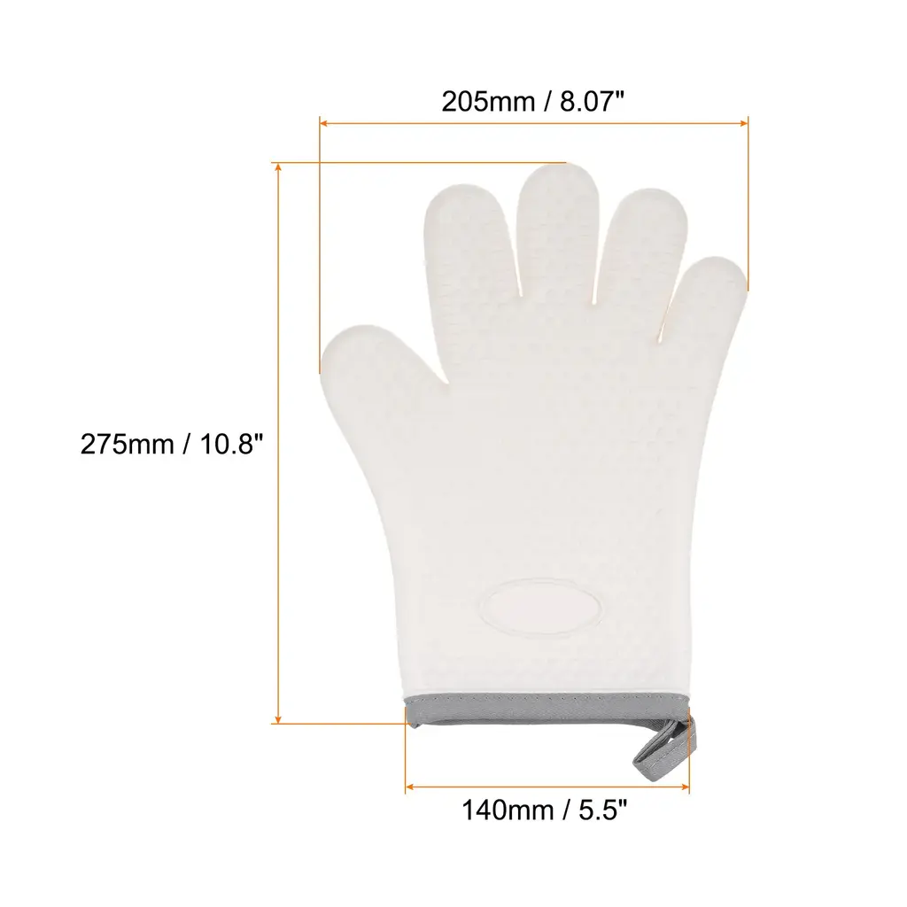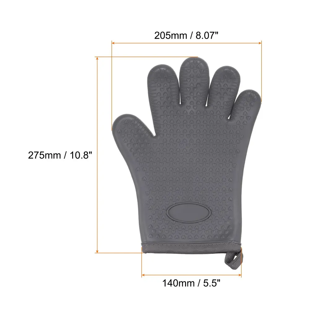 The outer layer of soft silicone oven gloves is made of heat-resistant silicone material to provide high-temperature protection, and the built-in insulating cotton cloth increases heat insulation and comfort, achieving double-layer protection.Oven mitts are designed with a dimpled, textured surface to provide a secure grip on pots, pans and other kitchen tools and prevent slips or accidents when handling hot dishes in the oven or stove.The silicone material makes the oven mitts easy to clean, just rinse them with running water or wipe them with a damp cloth, and they are also dishwasher safe, saving you time and energy in keeping them clean.This oven mitt features convenient hanging holes for easy storage and access when needed, hang it on a hook or display it within easy reach in the kitchen, ensuring quick access.Oven mitts provide reliable protection for a variety of hot surfaces and appliances, including ovens, hot pots, microwaves and grills, which is suitable for cake shops, grills, pizzerias, bakeries or home use, they allow you to handle hot items safely and confidently to minimize the risk of burns.