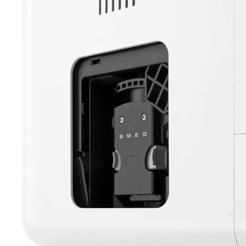 Retro style meets modern tech in this espresso maker from SMEG. With its charming rounded corners, brushed aluminum face, matte white finish and chrome details, this machine brings delicious espresso drinks and streamlined style to your kitchen. Add your favorite beans to the adjustable conical burr grinder, and choose from one of the 11 pre-programmed beverages. The milk system automatically froths milk to create luxurious lattes, mochas and more.Known for its wonderfully retro refrigerators, SMEG has created a joyfully designed kitchen appliance collection based on the compact, curved lines of postwar design. SMEG's nod to the past is the star of today's kitchen, incorporating all the current advances in technology while celebrating vintage aesthetics.