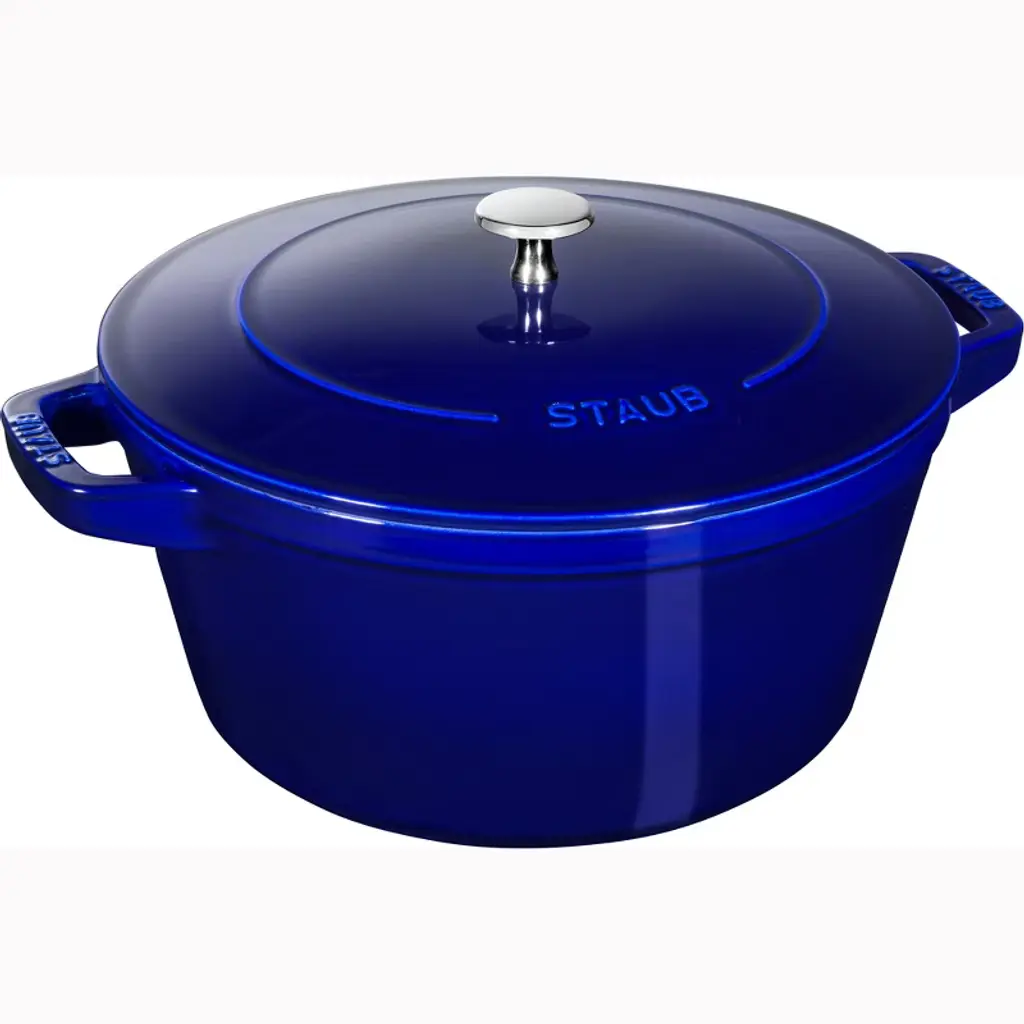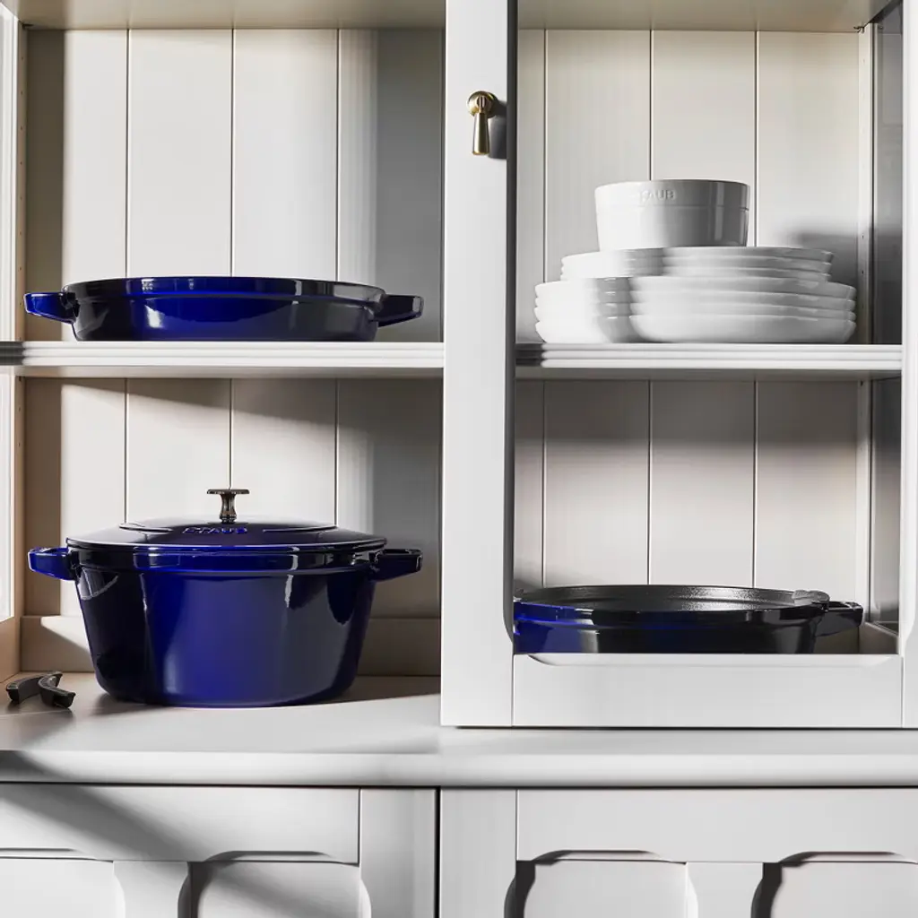 Staub Cast Iron Set 4-pc, Stackable Space-saving Cookware Set, Dutch Oven With Universal Lid, Made In France, Dark Blue