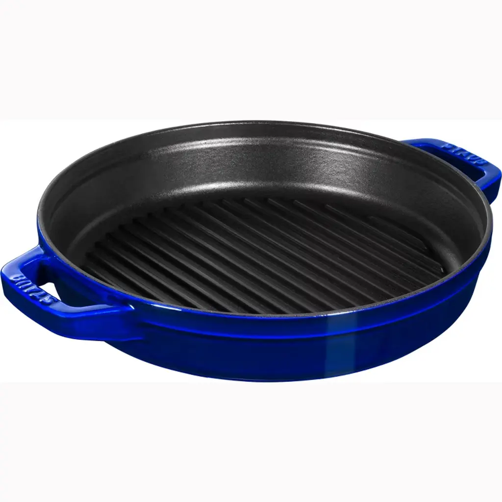 STAUB Stackable is the ultimate spacing-saving set featuring the essential cookware pieces for all the ways you like to cook. Thoughtfully designed with sloped sides to accommodate nesting, STAUB Stackable fits neatly into any storage area, including shelves, cupboards, and pot drawers.The set features a 5.25-quart round cocotte, 3.5-quart braiser, 10-inch grill pan, and a universal lid that can be used on each piece. Cook soup on the weekend in the cocotte, braise chicken thighs midweek in the braiser, and grill burgers on the grill pan for a quick family meal. The set price boasts a 30% savings over buying each piece individually. Attachable rubberized bumpers are included to ensure each piece remains scratch-free when stacked and unstacked.Like all STAUB cast iron, the Stackable set is unsurpassed for slow-cooking meats and vegetables to tender perfection, and for simmering hearty stews and soups. Cast iron possesses exceptional heat-retaining qualities, so the pot heats evenly throughout. With a heavy weight, tight-fitting lid that retains moisture and tiny spikes on the lid interior that create a rain-forest effect evenly returning juices back onto food, you can expect moist, perfectly cooked food every time you use these pans.Rooted in French culinary heritage, STAUB cookware is beloved by professional and home chefs for its exquisite craftsmanship, exceptional performance, and timeless beauty. Each STAUB cast iron piece effortlessly and elegantly transitions from the oven to the table - you can cook and serve in the same dish. These heirloom pieces can be lovingly passed from generation to generation.