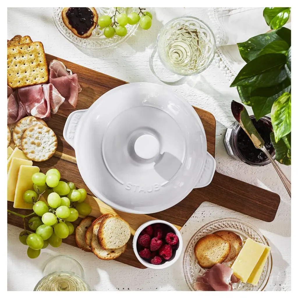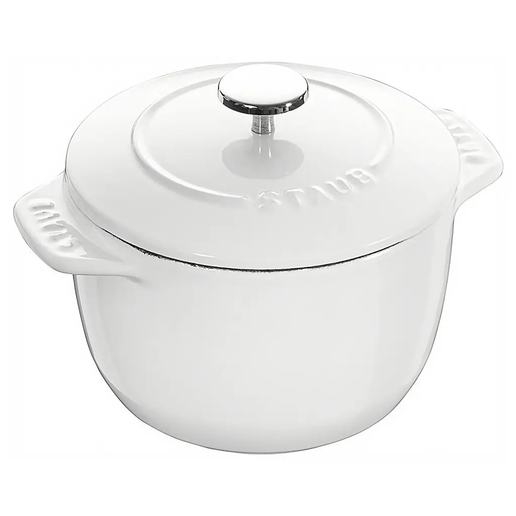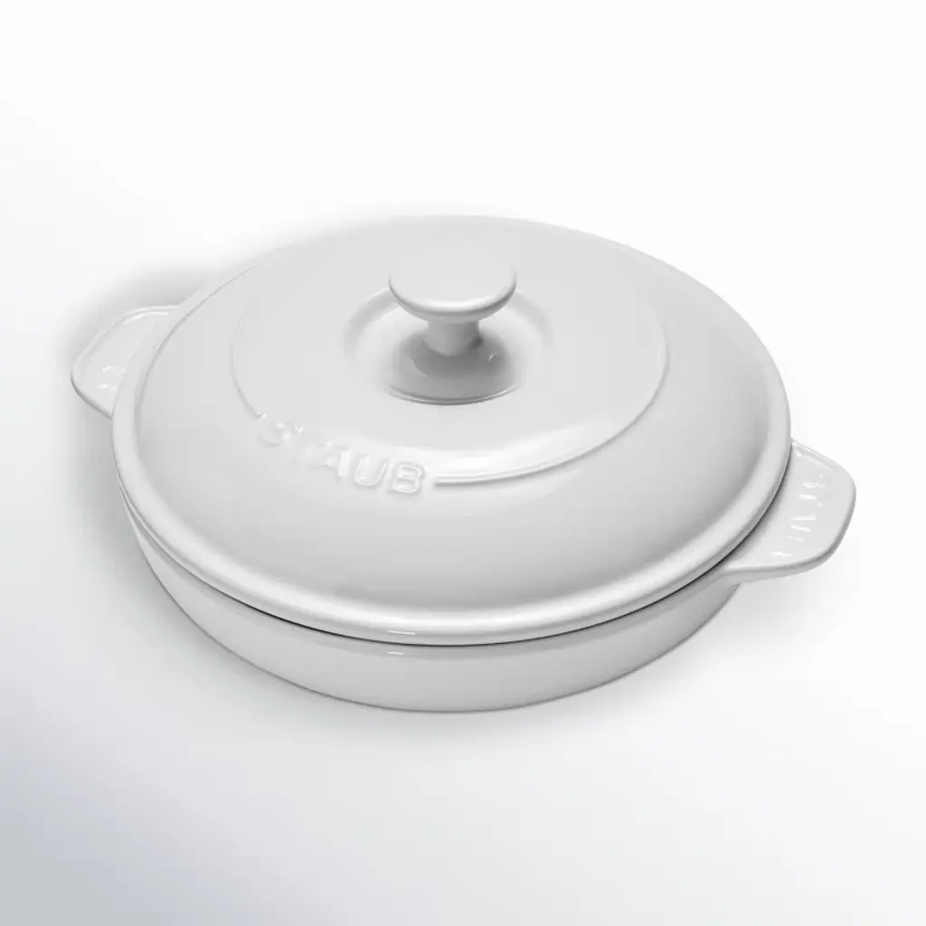 This nesting set features 2 rectangular dishes measuring 6-inch x 7.5-inch and 7.5-inch x 10.5-inch. They are perfect for lasagna, casseroles, and desserts, as well as roasted meats and vegetables. The beautiful white porcelain enamel glaze prevents moisture absorption during baking, so baked goods won't dry out. Diffuses heat gently and retains heat exceptionally well. Oven and broiler safe up to 572°F, ceramics can also be used in the microwave and are dishwasher safe. Highly scratch and impact-resistant, Staub ceramics are conveniently freezer safe.