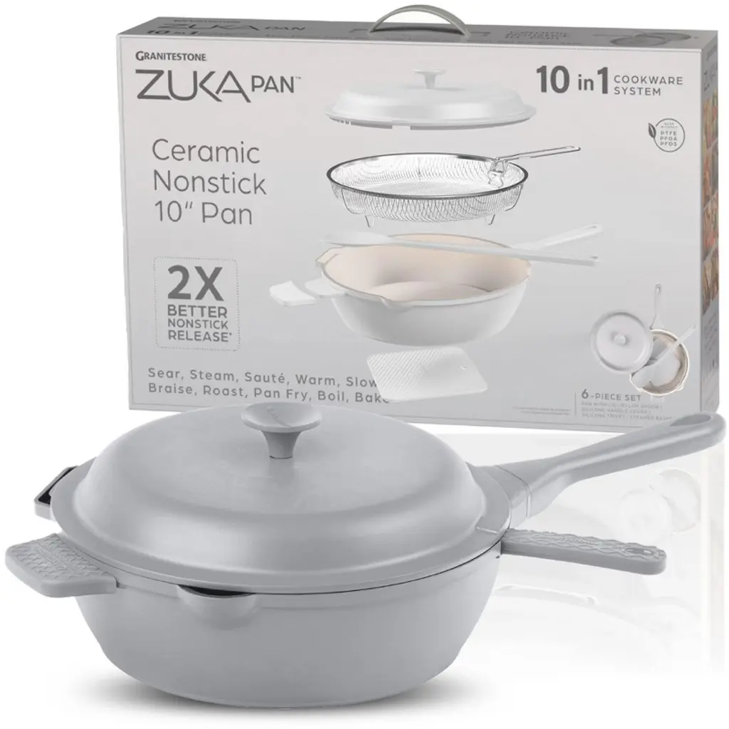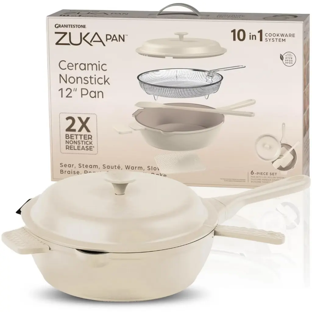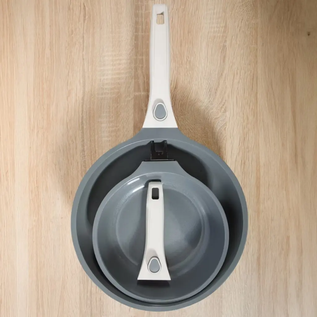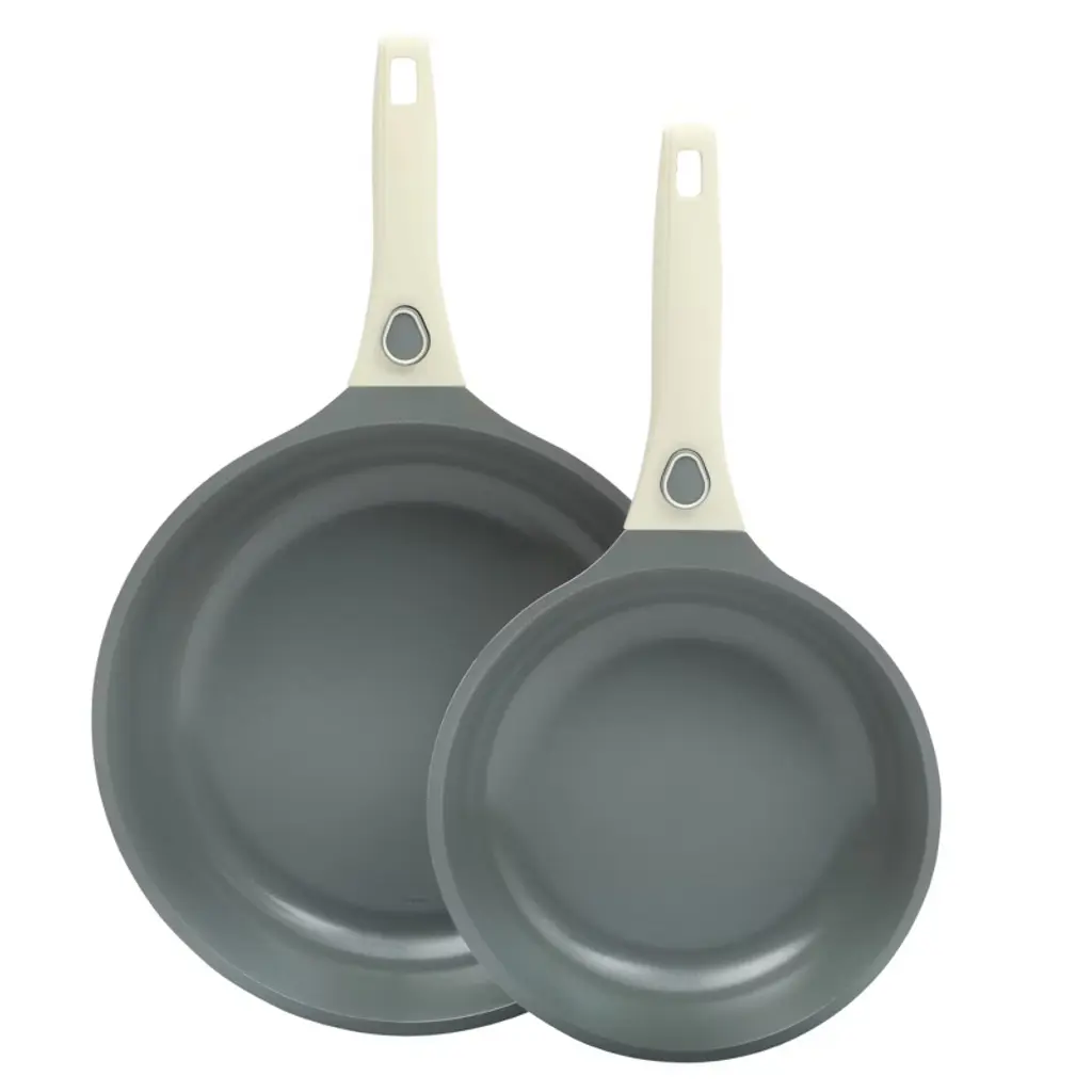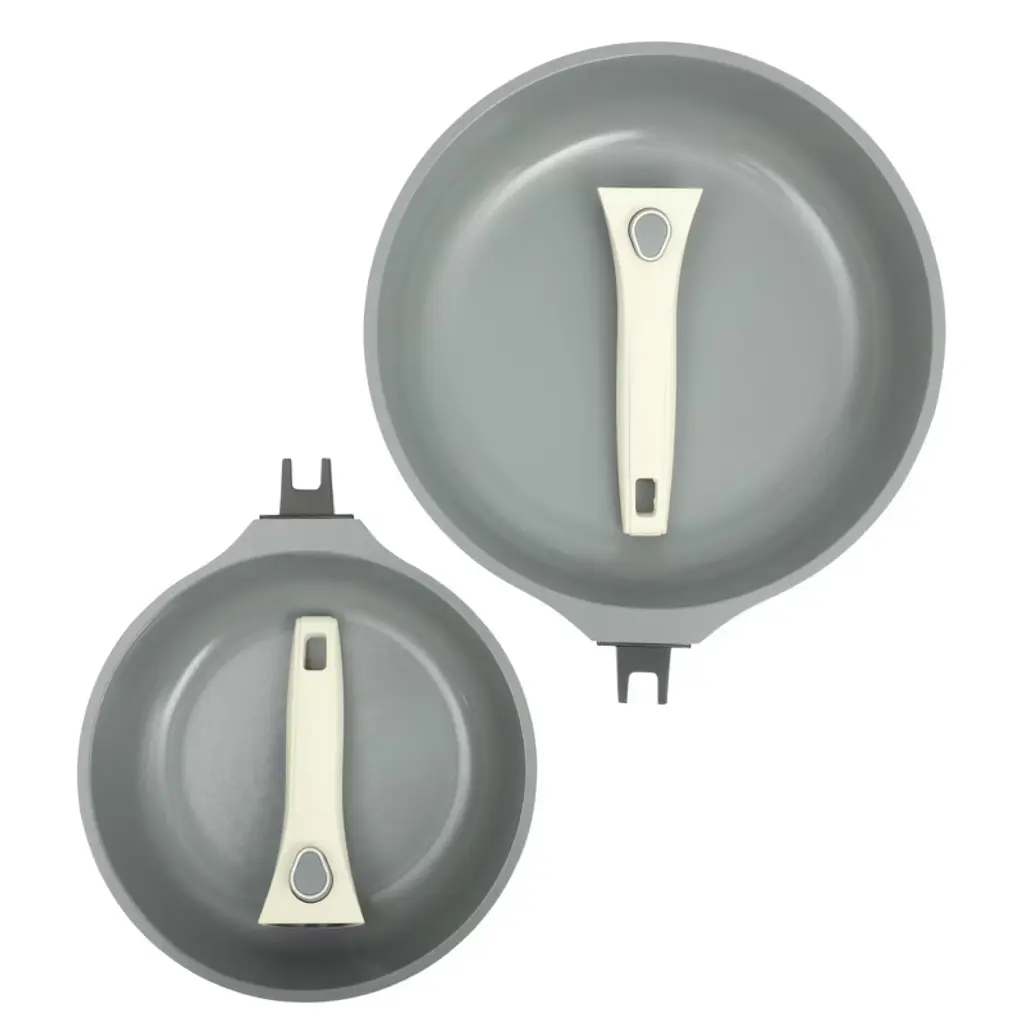 Sur La Table Kitchen Essentials Craft Studio Detachable Handle Ceramic Non Stick 8 &10 Inch Fry Pan Set- Eggshell