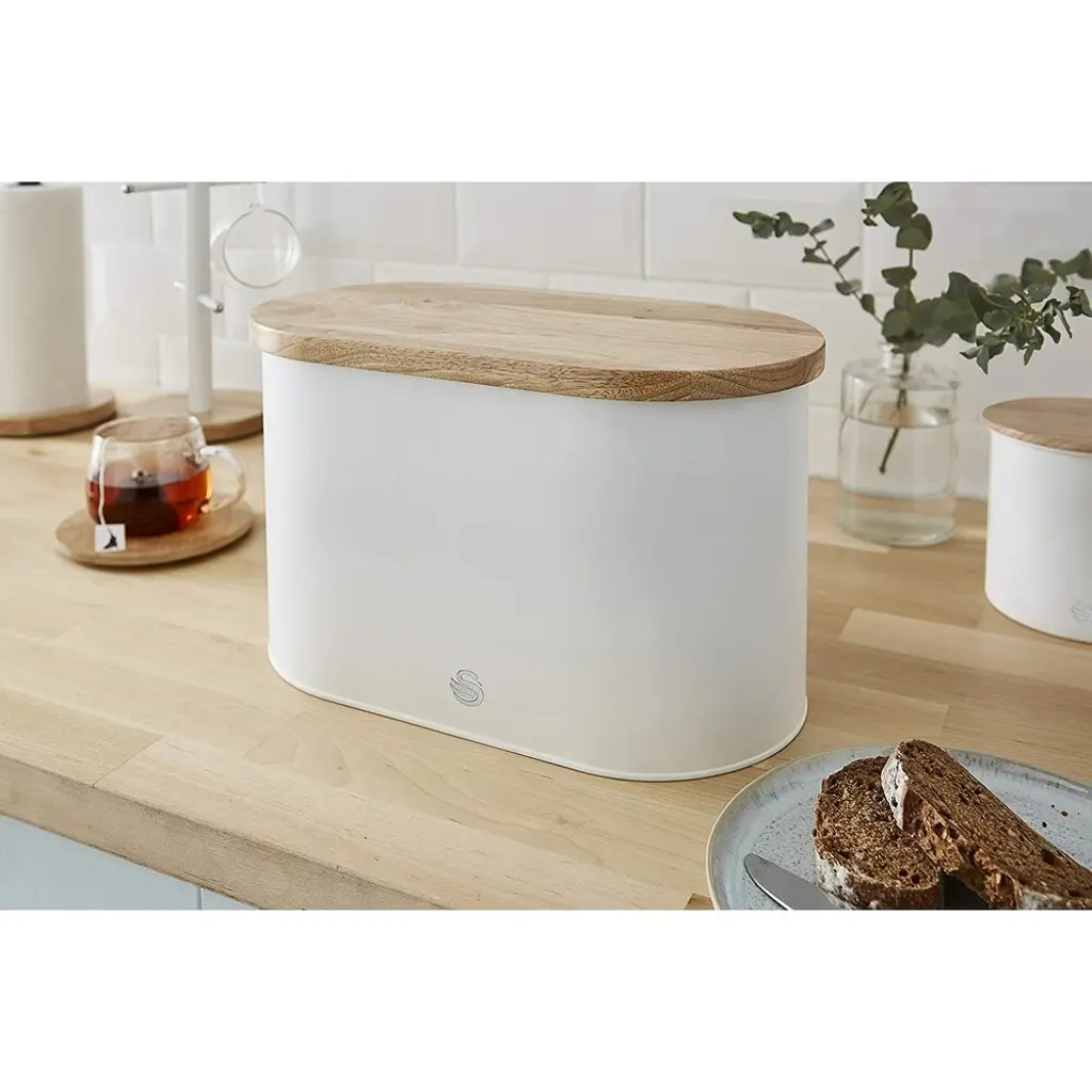 Swan Nordic Scandi Bread Bin Bamboo Cutting Board - White