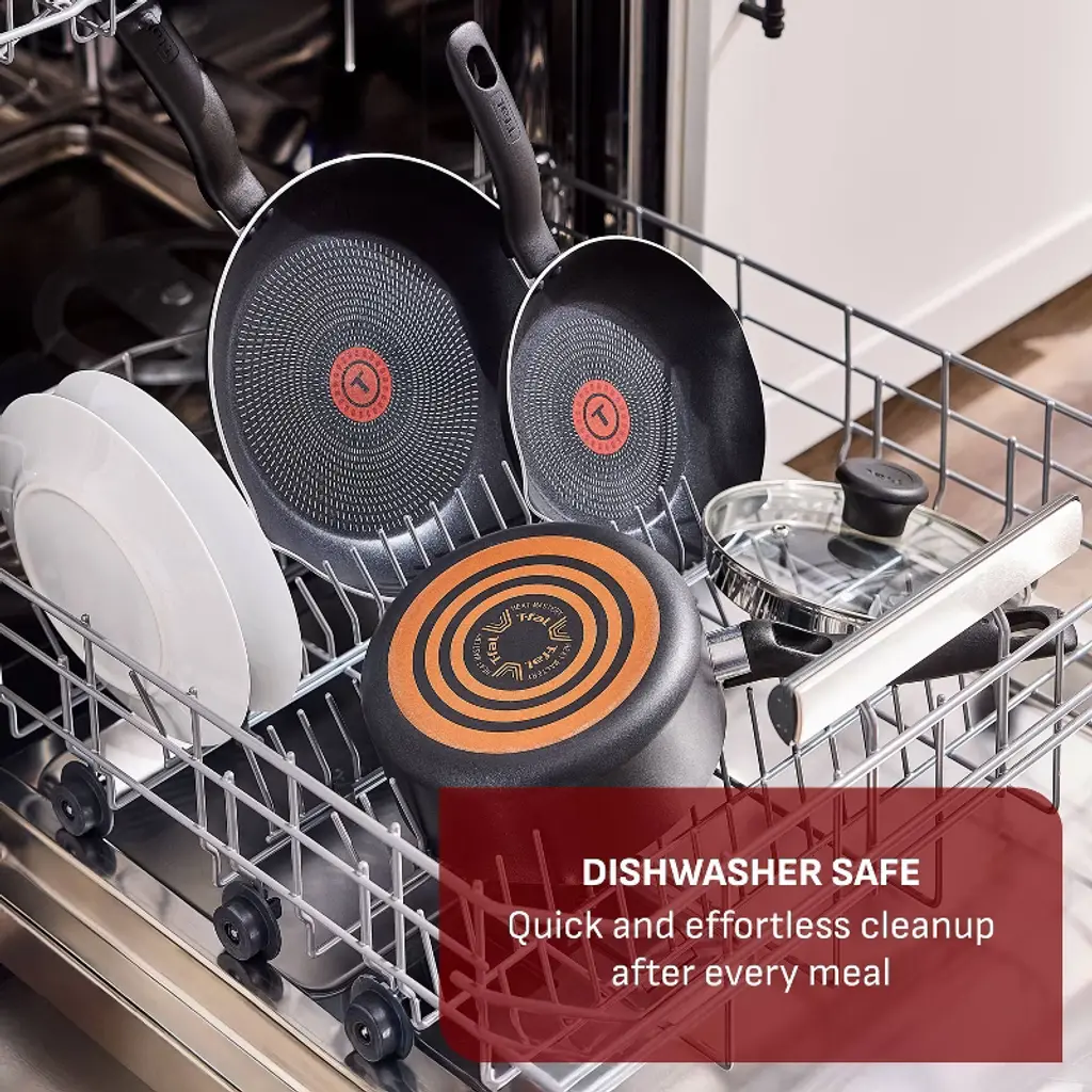 Discover T-fal Simply Cook 8 inch, 10.5 inch, and 12 inch frypan set, design to provide high performance and versatility! The ProGlide non-stick interior caoting ensures easy food release that needs little to no oil for healthier cooking. Crafted with a 100% recycled aluminum body (*75% of the product’s total weight) it helps you reduce your eco-impact. Includes Thermo-Spot® Technology our unique heat indicator that turns solid red when the pans are perfectly preheated to start cooking. The even heat base prevents hot spots and the comfortable handles to provide and sturdy and secure grip. Oven safe up to 350°F and dishwasher safe to make everyday cooking a more enjoyable and effortless experience.About Us: For over 60 years, T-fal has been at the forefront of kitchen innovation, starting with the world’s first non-stick cookware. Our brand was built on the idea of making every day cooking easier, faster, and more enjoyable. From intuitive design to time-saving features, T-fal delivers reliable performance for home cooks who want great results without the hassle. Designed for those who value simplicity and innovation, T-fal helps you cook with ease and confidence, every day.