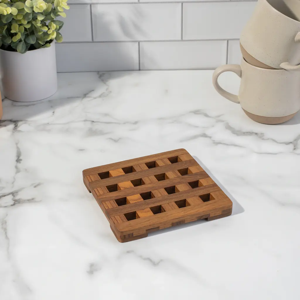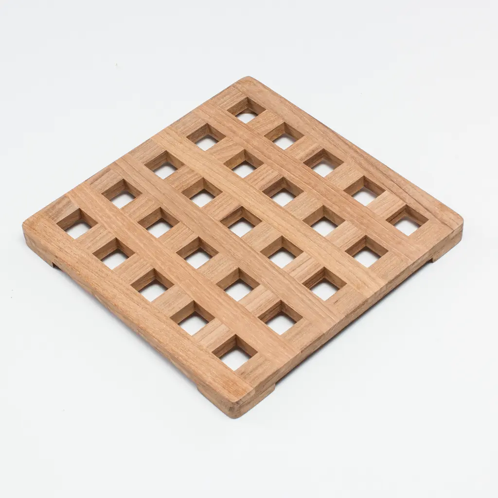 Teak Trivet62420 - Small 6" Square Trivet 62421 - Large 8" Square Trivet Protect your table and countertops from heat or water damage. Handcrafted from solid teak, will provide a lifetime of enjoyment.