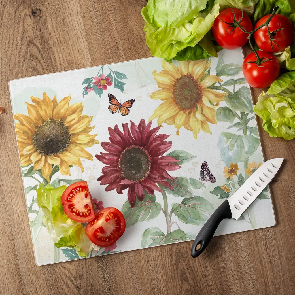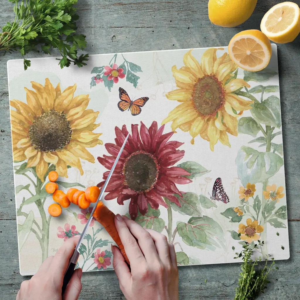 Tempered Glass Counter Saver / Cutting Board Sunflower Splendor - 15" X 12" Made In The Usa - Multi-8