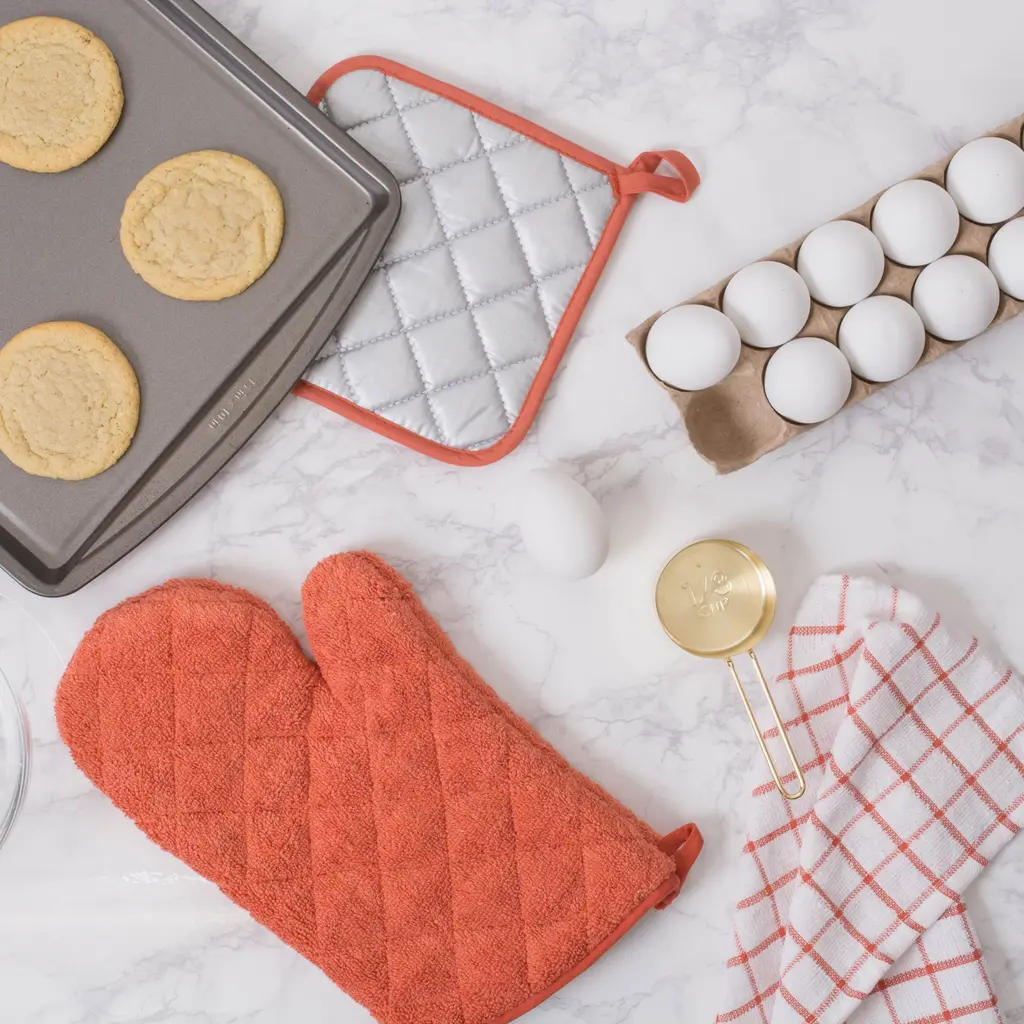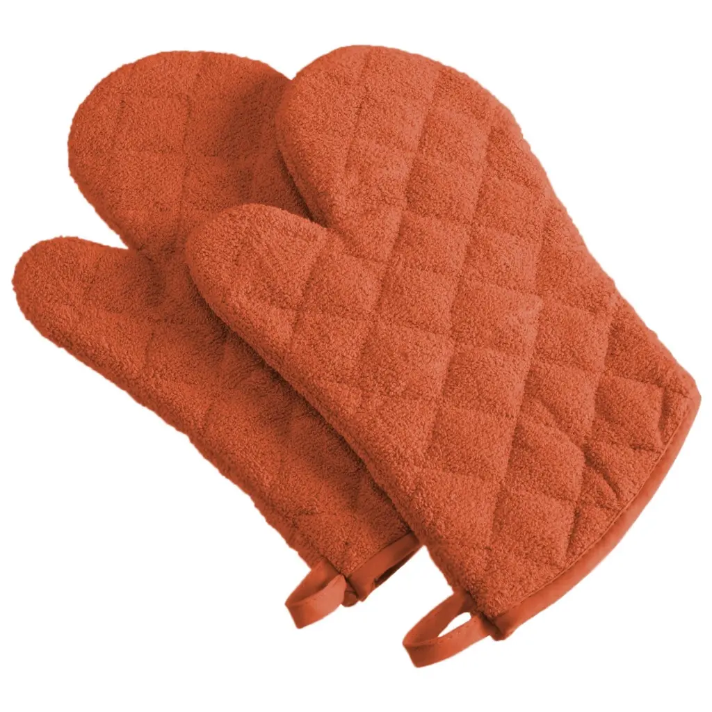 Add style and safety to your kitchen with these eye-catching oven mitts. Available in a variety of set sizes, colors, and styles, these oven mitts are crafted from cotton terry that offers superior durability. The oven mitt is machine washable for easy care.Features: