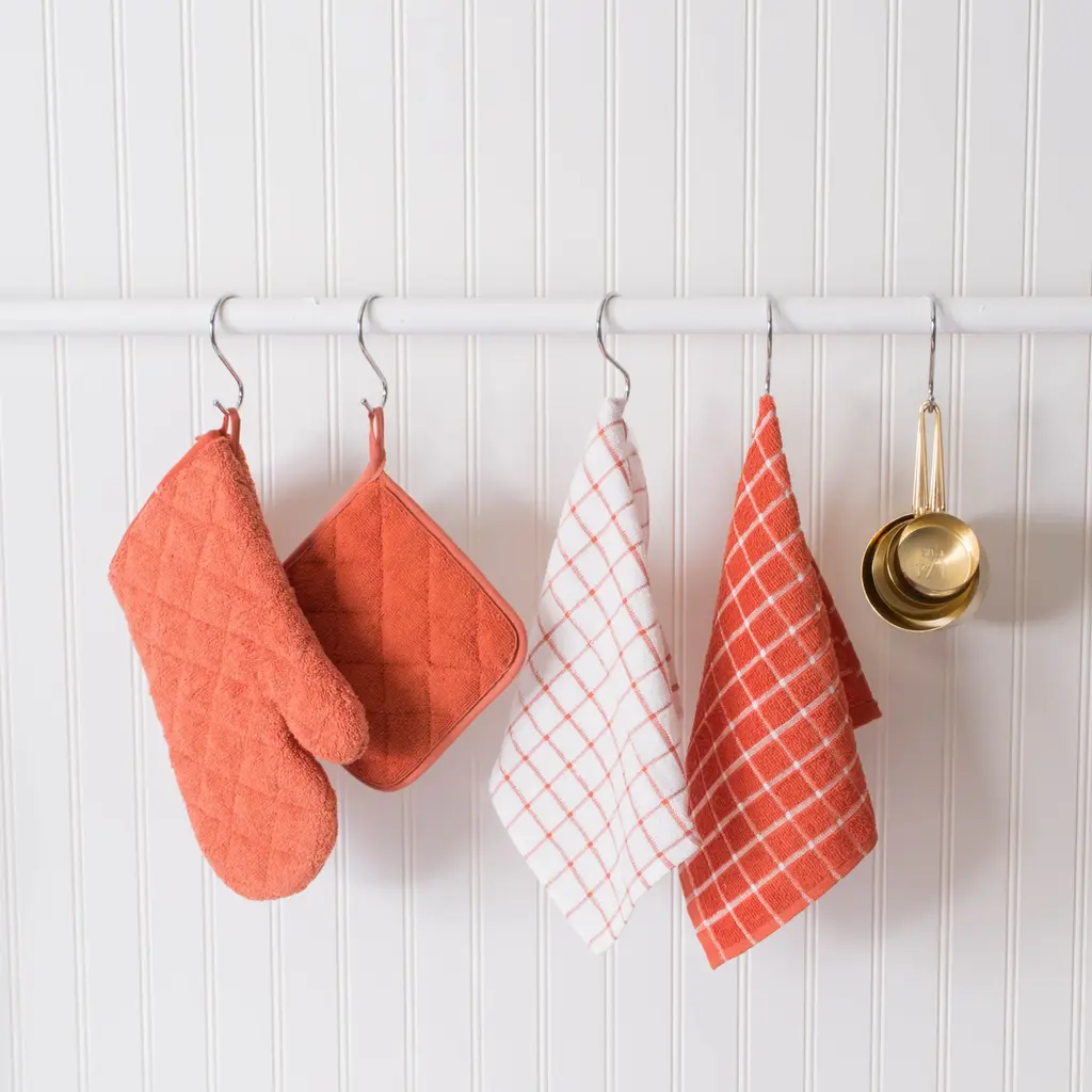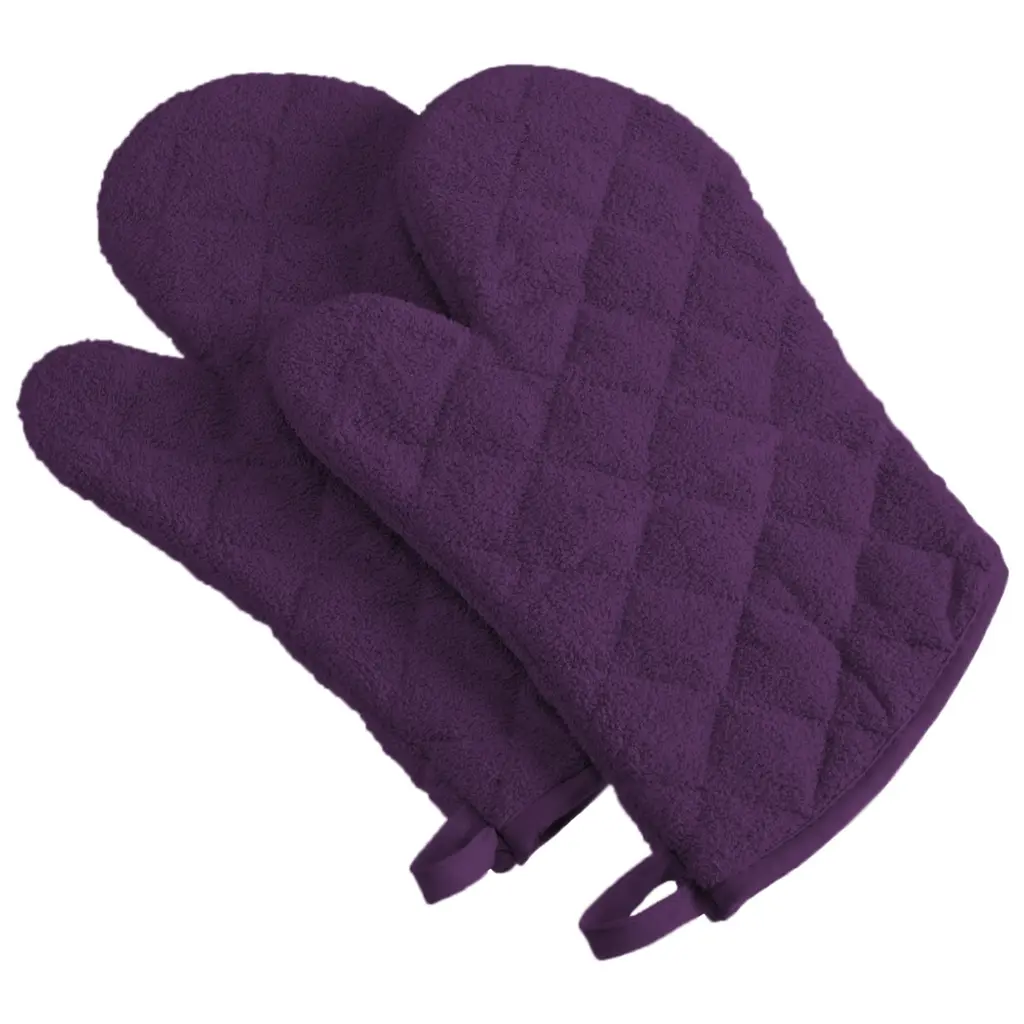 Add style and safety to your kitchen with these eye-catching oven mitts. Available in a variety of set sizes, colors, and styles, these oven mitts are crafted from cotton terry that offers superior durability. The oven mitt is machine washable for easy care.Features: