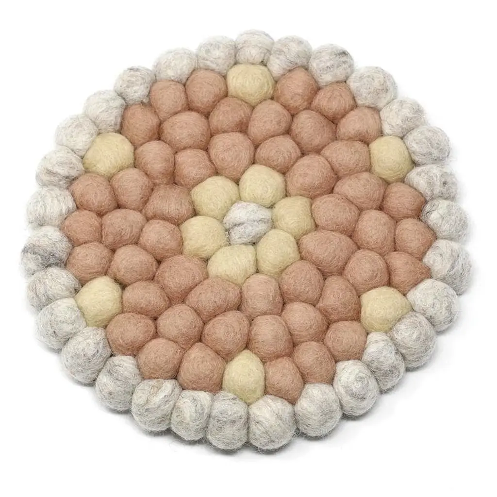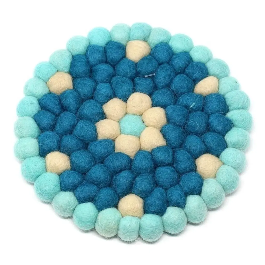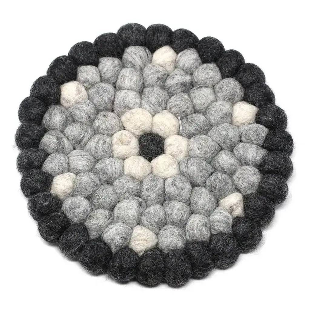 Protect your countertop and dinner table by placing this top-quality trivet under hot pots and serving dishes. Handmade by talented artisans in Nepal, this hot pad trivet is a socially-responsible, eco-friendly, and Fair Trade product. Made of many felted wool balls woven into a circle, this trivet is available in a variety of colors to best meet your preference and decor needs. Features:The handcrafted touch of artisan skill creates variations in color, size, and design. If buying two of the same item, slight differences should be expected. Note: Color discrepancies may occur between this product and your computer screen. Imported