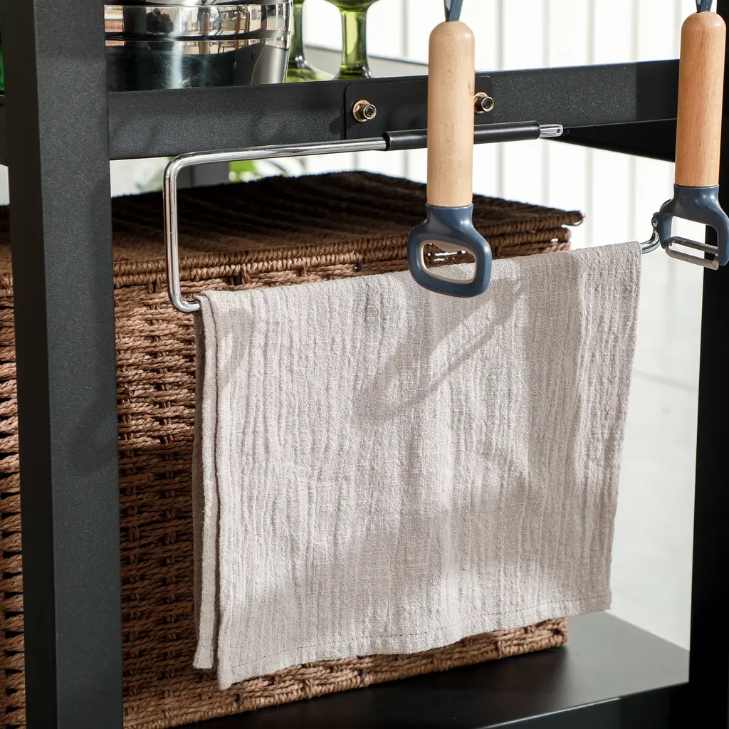 Warm tips: Product after-sales guide 🚀Thank you for purchasing our products!Please do not return the product in case of problems. Please take a photo and send it to us, we will quickly process and provide a reasonable solution. Thank you for your cooperation! 🙏Stainless Steel Table: With a 32" x 20.5" surface, our outdoor prep table bbq cart is large and spacious. Use it as a bar cart, an outdoor prep table, a pizza oven stand, an outdoor kitchen island or a space for a table top grill.All-Inclusive Outdoor Grill Station: This outdoor grill cart has everything you need to make meals mobile. Not only does it have a long surface, but it also has 2 tiers of storage, a seasoning shelf, a paper towel rack, a garbage bag holder, and 4 hooks for hanging utensils.Fast, Portable, Multi-Use: Lift up on our pizza oven cart to quickly get items from the kitchen to outside spaces like the patio, porch, garden or poolside, and back. With 2 horseshoe-shaped feet, our BBQ table and grill cart keeps safely in place, so items like plates or a pizza oven won't fall down.Quick & Cleanly: With a sleek, wipe-clean, stainless steel table on top, our outdoor pizza oven table is easy to maintain. The combination of shelving and a space for garbage bags and paper towels means cleaning can be done instantly and trash can be wheeled away to be disposed of as soon as you're done.Grilling Table Info: Overall Dimensions: 39.25" L x 25.5" W x 33" H. Stainless Steel Top Size: 32" L x 20.5" W x 1.5" D. Seasoning Tray Size: 19.25" L x 5" W x 4.75" H. Storage Shelf Size: 28.25" L x 19.75" W. Weight Capacity: 66 lbs. (Top), 22 lbs. (Shelf).