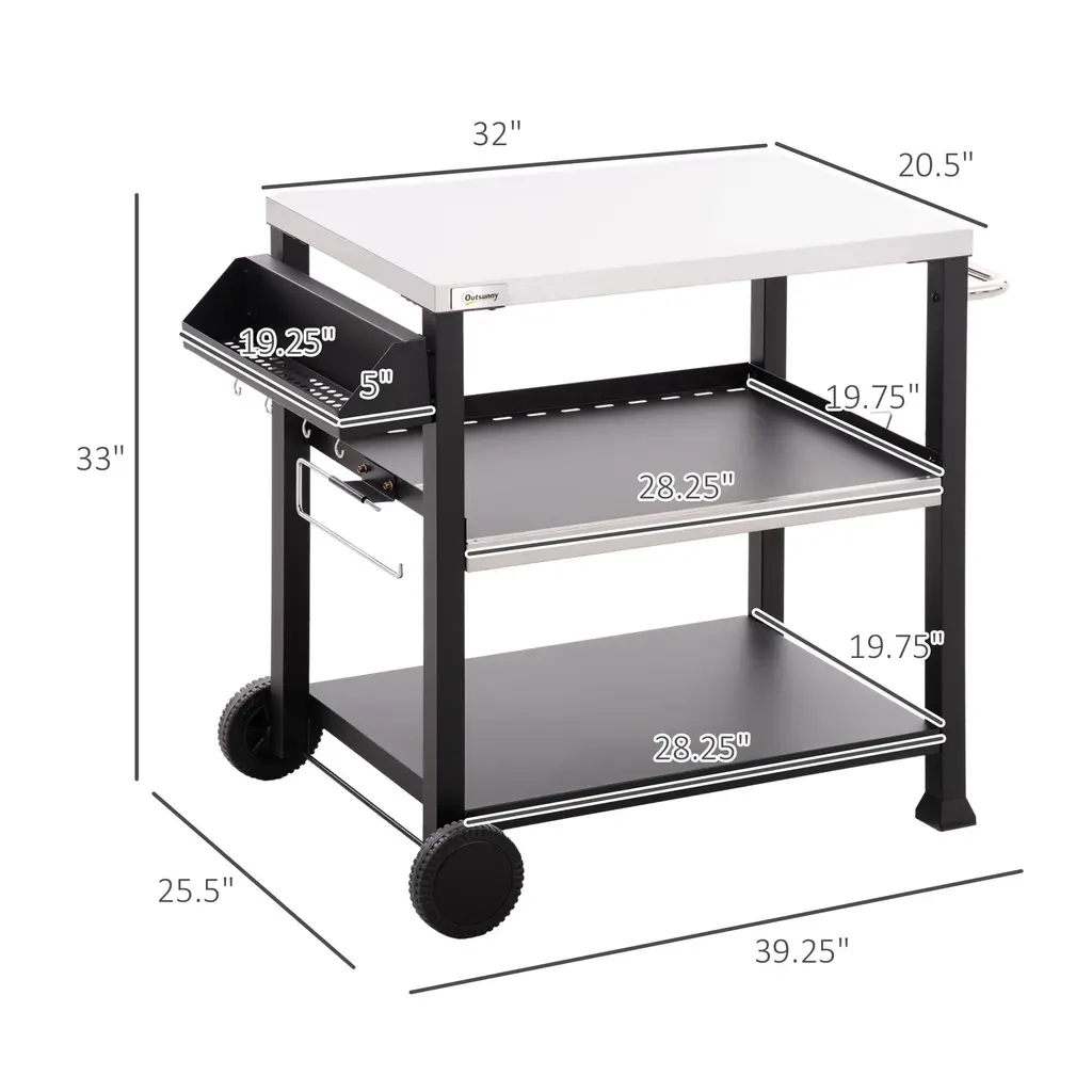 Three-Shelf Outdoor Grill Cart With Stainless Steel Tabletop, Side Handle, 32" X 20.5" Multifunctional Pizza Oven Stand - Black