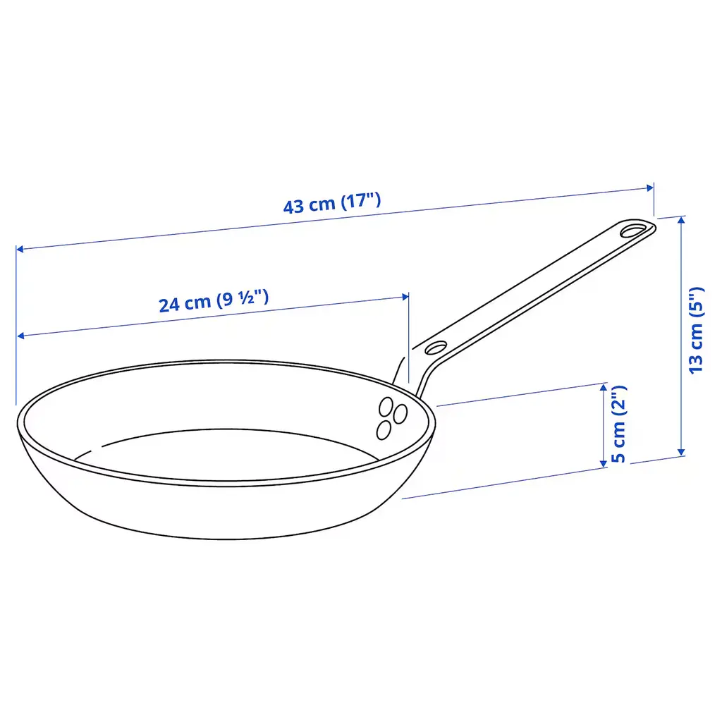VARDAGEN Frying pan - carbon steel 9 ". When seasoned properly, the carbon steel pan develops a dark non-stick surface, making it great for cooking tasty food without sticking. And it only gets better the more the pan is used. Works well on all types of cooktops, including induction.