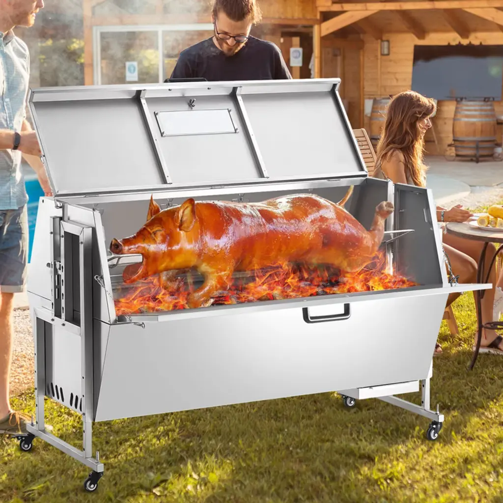 Vevor 60w Rotisserie Grill With Hooded Cover, 56 Inch Pig Lamb Goat Rotisserie Grill Roaster, 286lbs Capacity, Silver