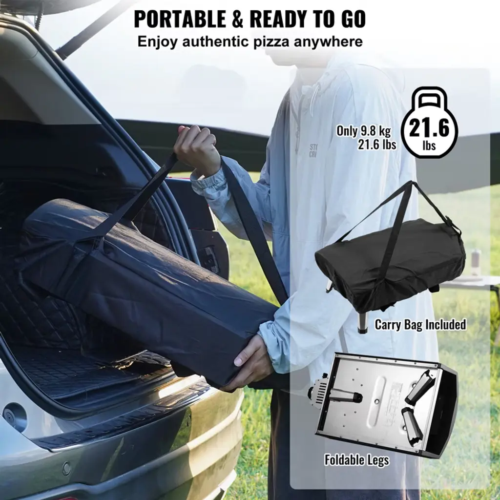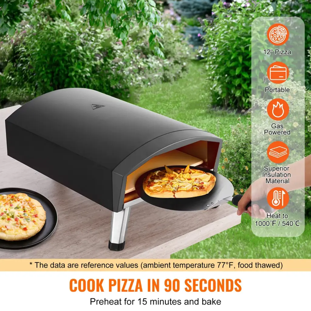 Vevor Outdoor Pizza Oven, 12" Gas Fired Pizza Maker, Portable Outside Pizza Grill With Thickened Cordierite Pizza Stone, Waterproof Cover