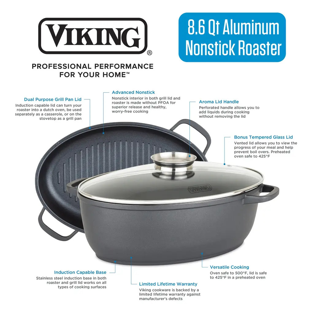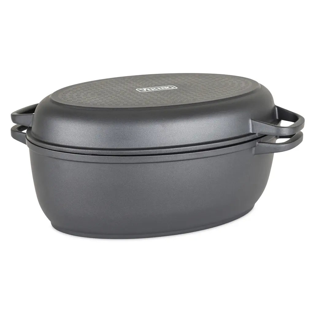 Viking 3-In-1 8.6-Quart Aluminum Cast Oval Roaster With Glass Basting Lid - 8.6qt - 8.6qt - Grey