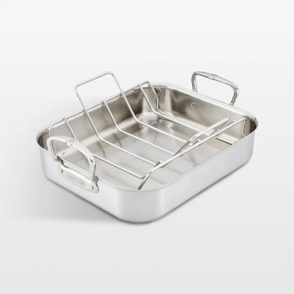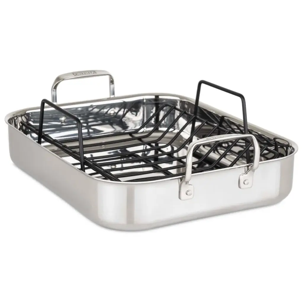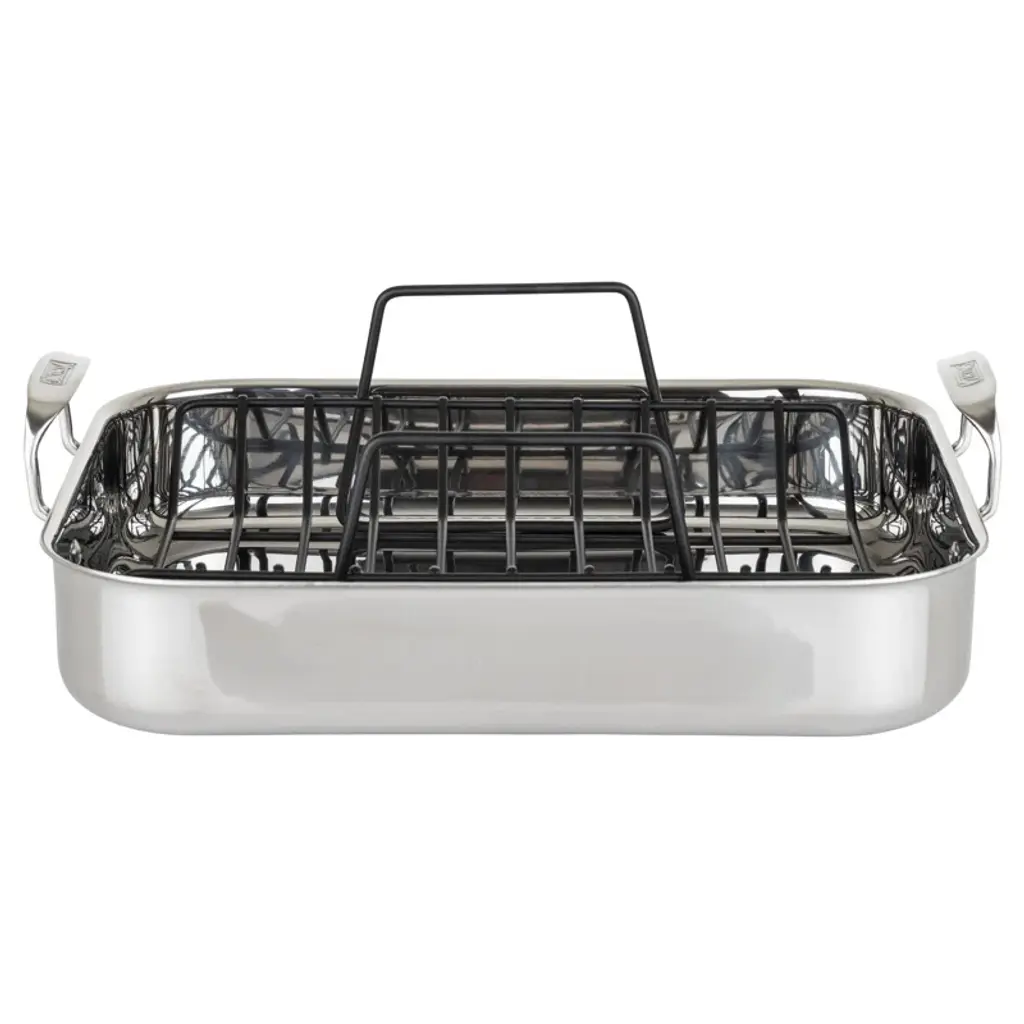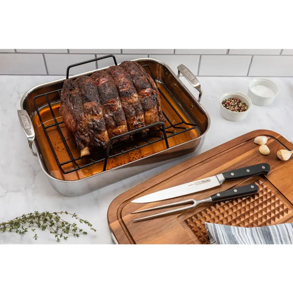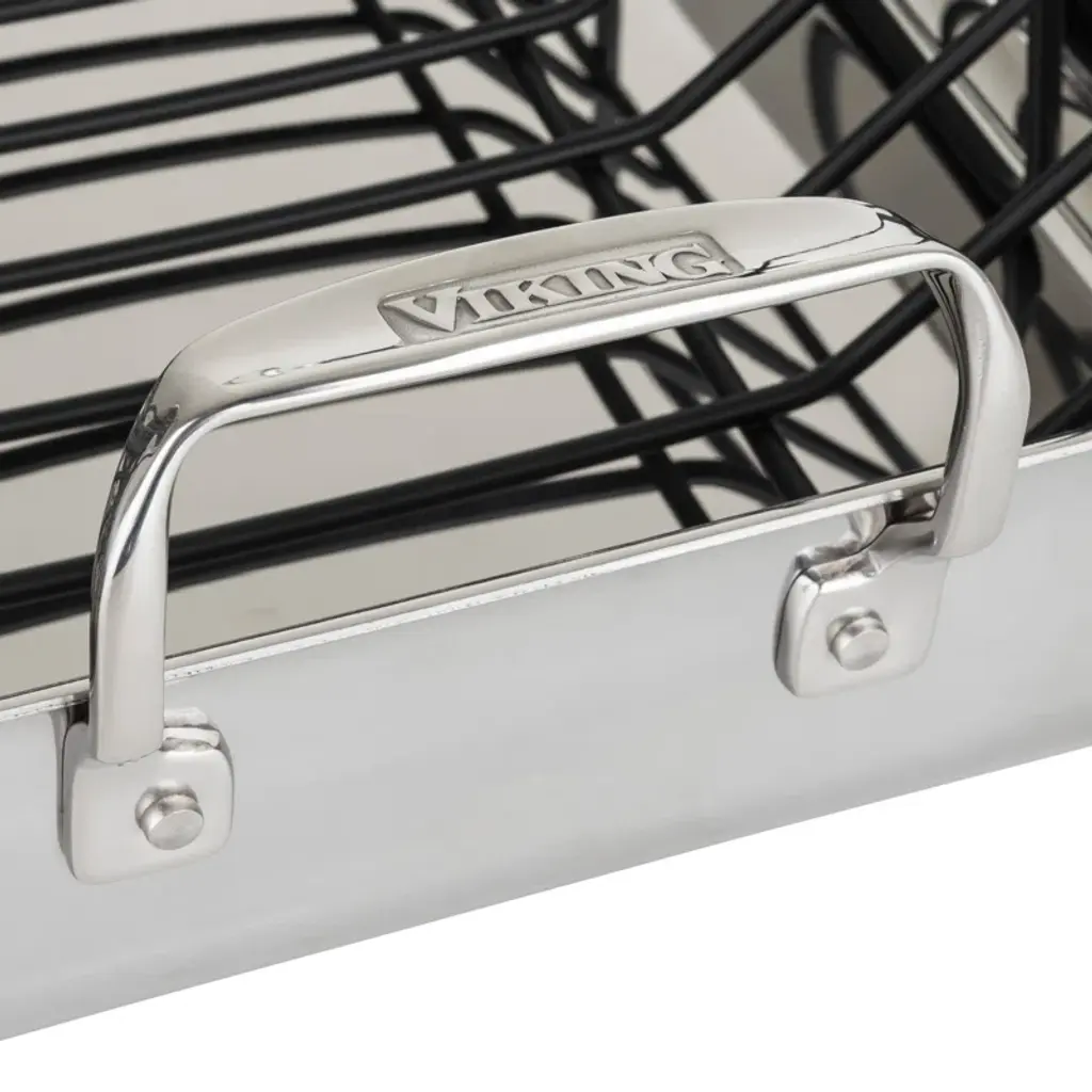 Viking 3 Ply Stainless Steel Roasting Pan With Rack And Thermometer Set