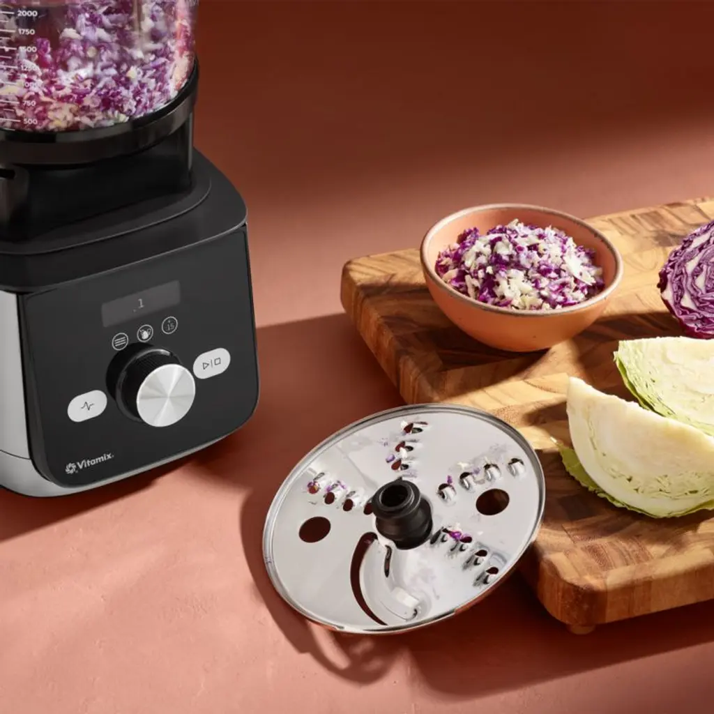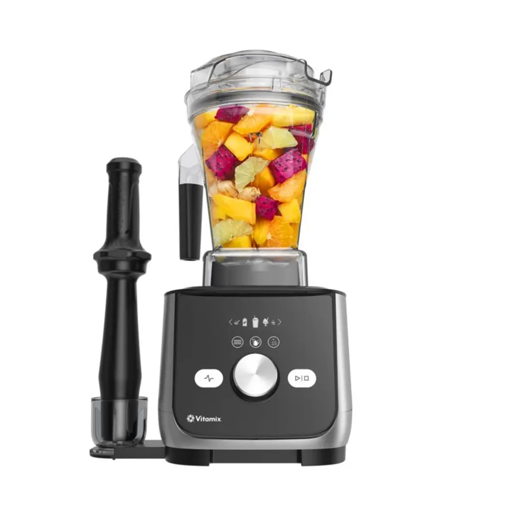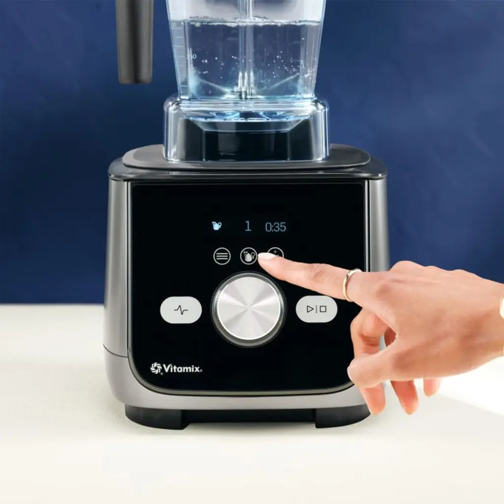 This handsome Vitamix blender in brushed stainless steel offers 10 blending programs to make flawless drinks, snacks, meals and desserts. Variable speed control allows you to refine textures, from a batch of chunky stew to small servings of super-smooth baby food. A built-in digital timer helps take the guesswork out of recipes, and the ingenious Add 15 Seconds button gives just a bit more blending time when needed. When the tamper indicator is displayed, use the tamper to press thick and frozen mixtures toward the stainless steel blades with no need to stop and scrape the sides of the shatter-resistant container. Dishwasher-safe for easy cleanup, the Ascent X5 blender also features a handy self-cleaning function.