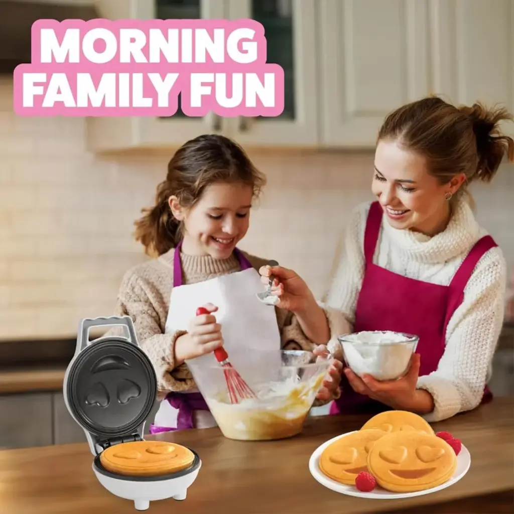 Waffle Wow Heart Eye Emoticon Mini Waffle Maker - Make Breakfast Fun W/ Smiley Face Designs, Electric Nonstick Waffler - Officially Licensed By Emoji