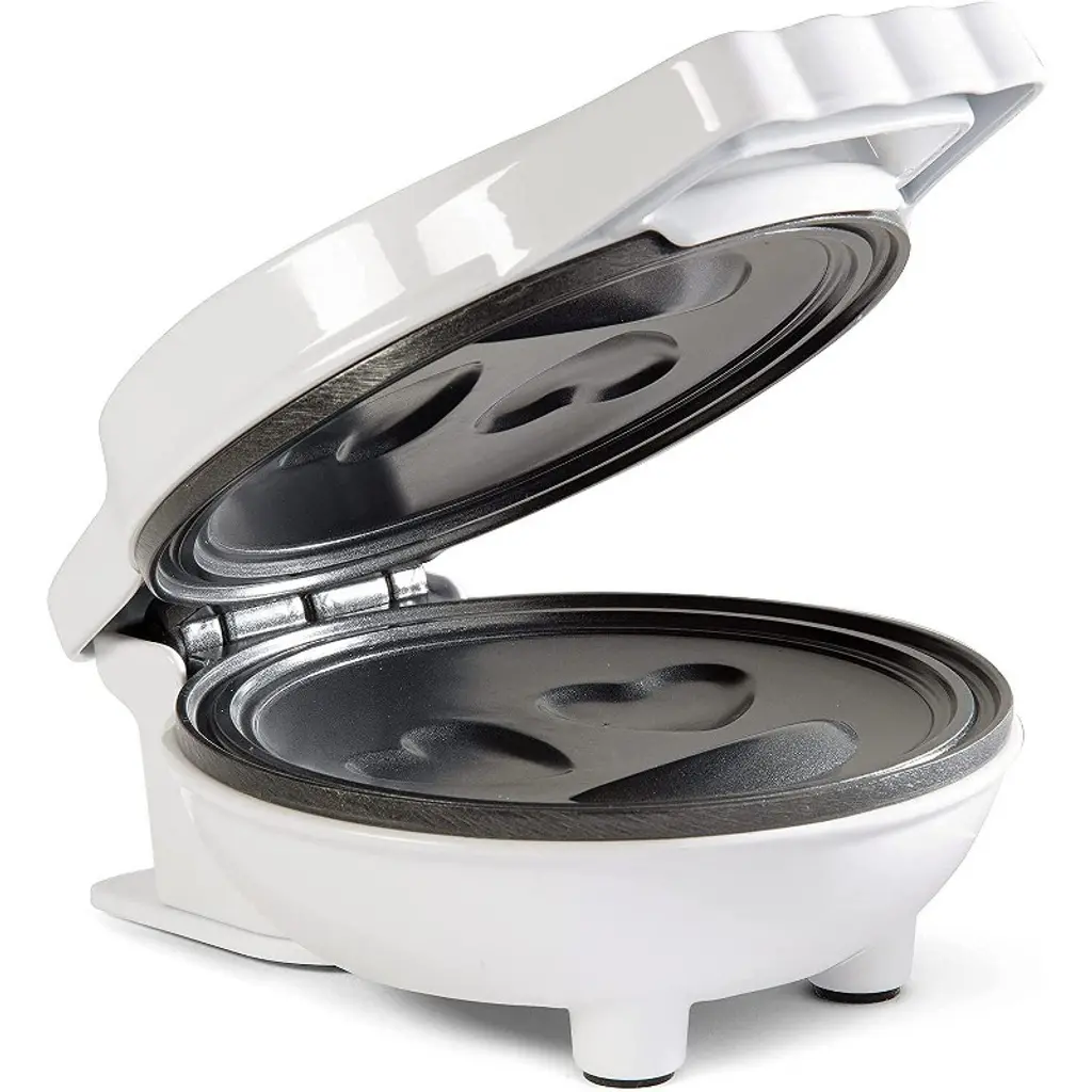 This mini waffle maker creates one heart-eye emoticon-shaped waffle in just minutes! They are great for decorating and make for a delicious bite-sized treat. This easy-to-use, waffle maker will brighten up your mornings and add a creative twist to breakfast time. Avoid a messy clean-up with the mess-free, nonstick coating and the appliance stands upright for maximum storage use.