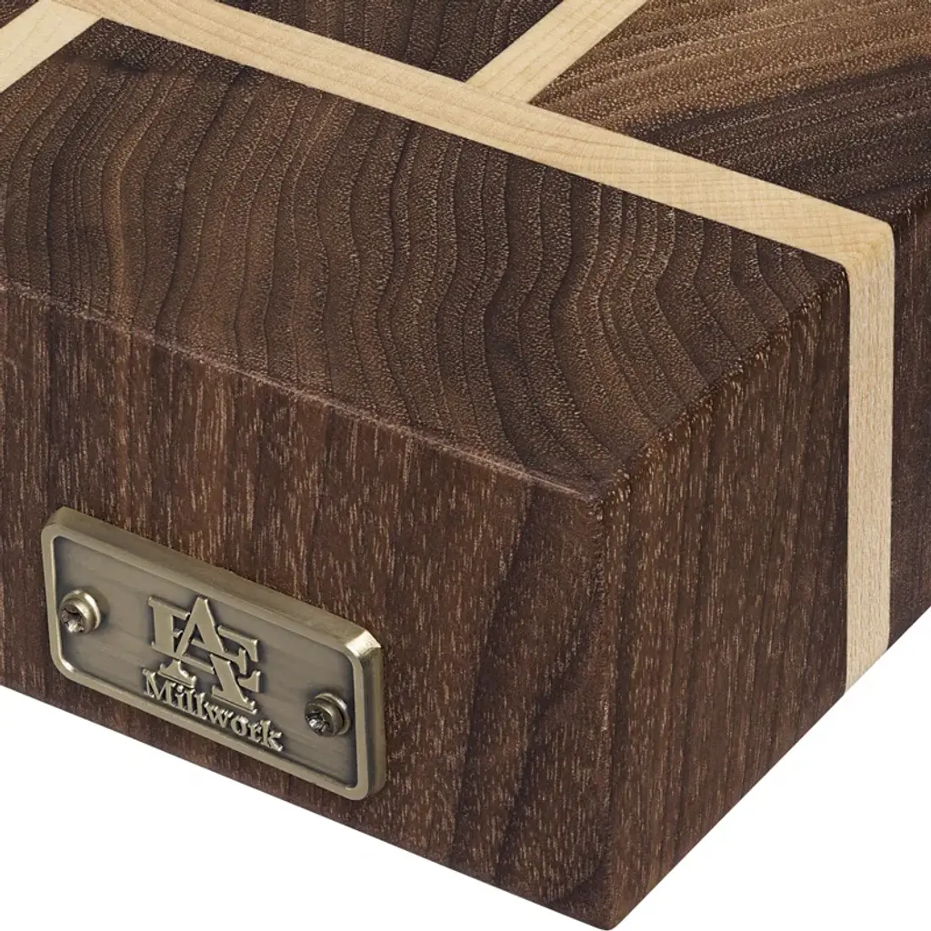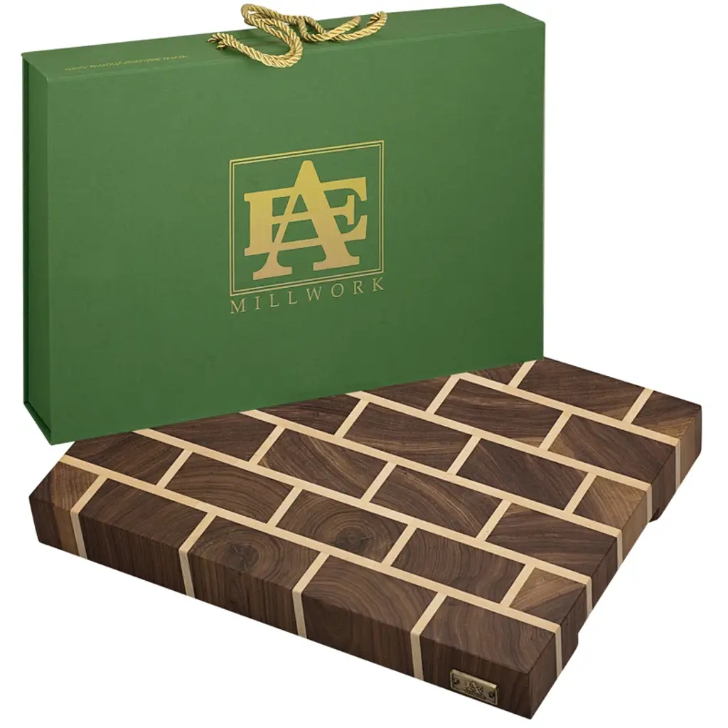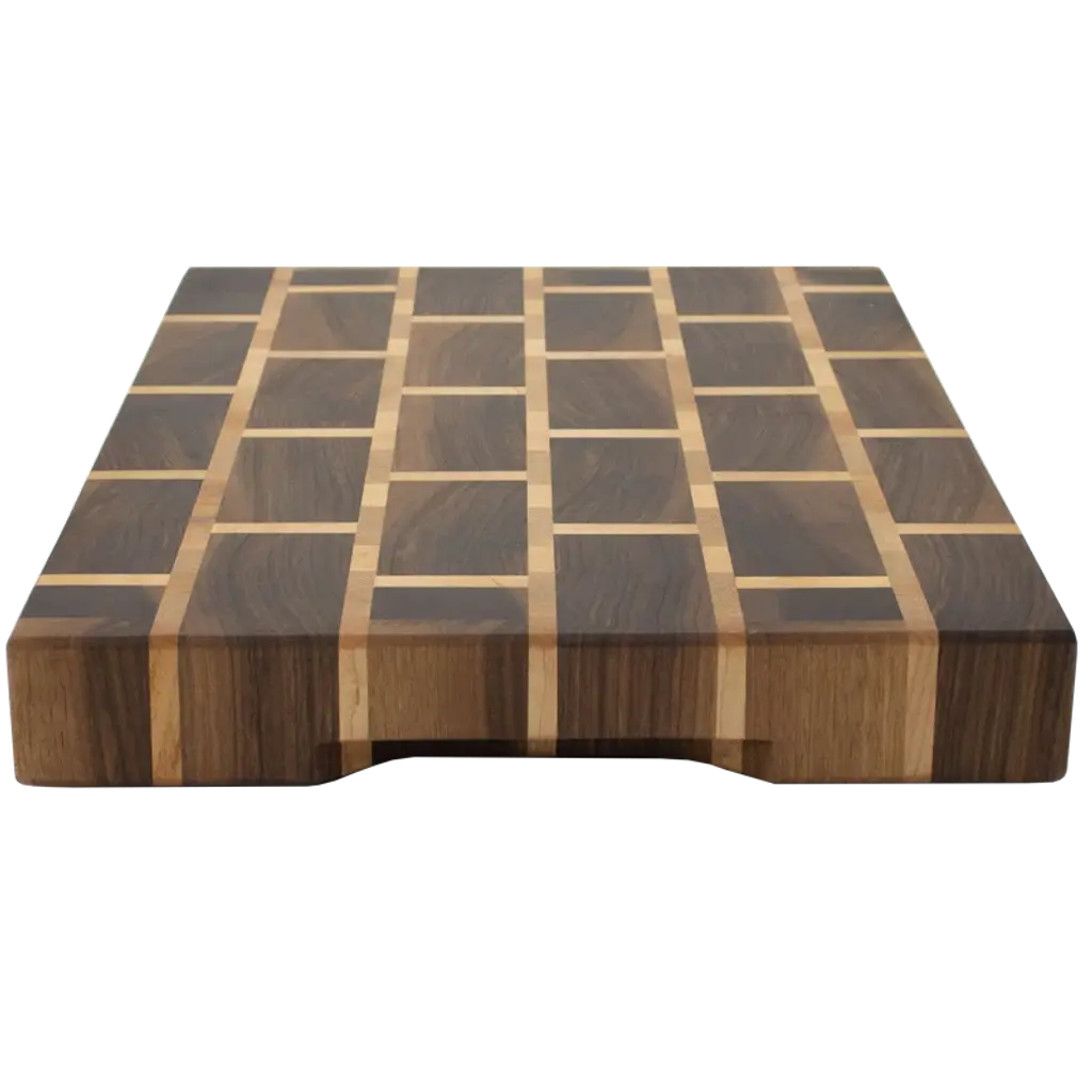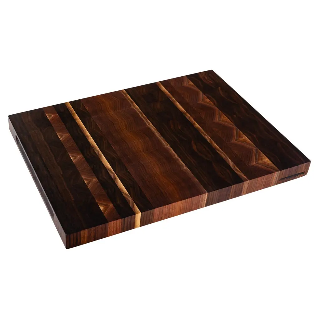 About our product: Luxury edge grain cutting board. It is built extremely solid for longevity. When cared for correctly, this cutting board will outlast most items in your kitchen. Handcrafted with care and attention. Each of our boards is treated as an individual project. Cutting, planing, and sanding every single piece one by one, finishing them to the optimum touch enables us to create the finest quality boards. Four sturdy rubber feet at the corners raise the board off the counter, preventing it from moving around the surfaces and keeping it away from standing water on counters. This cutting board is the natural color of the wood - no stains or dyes are used. Therefore the beautiful grains can be seen and the board is 100% food safe.